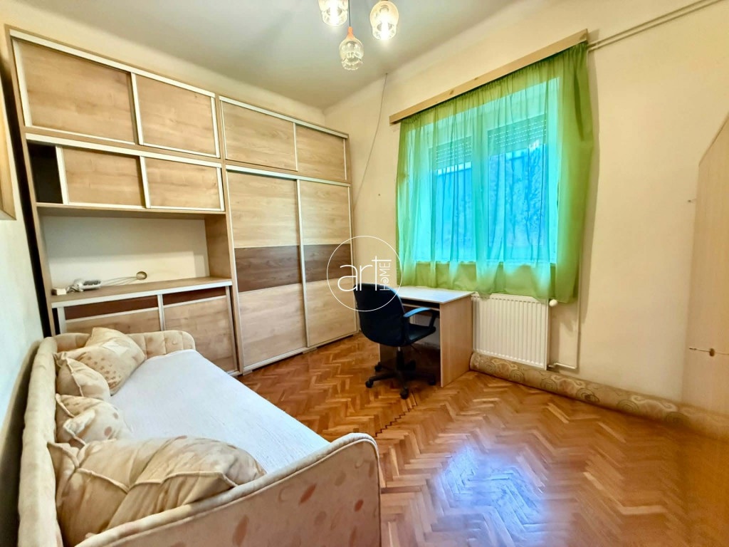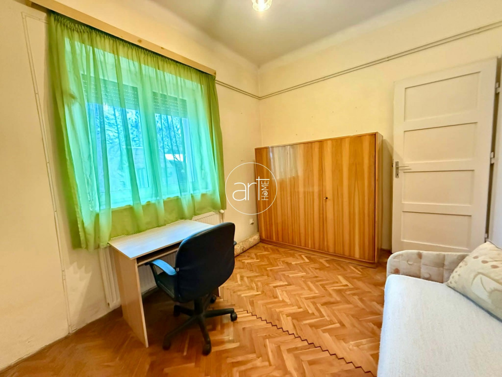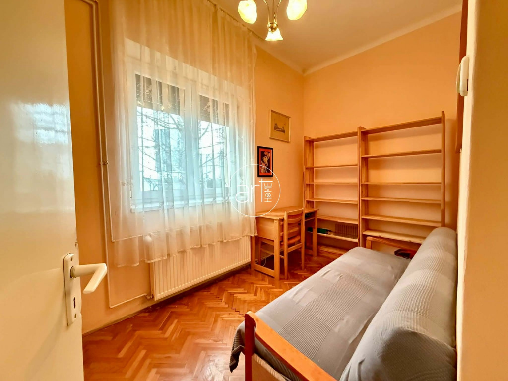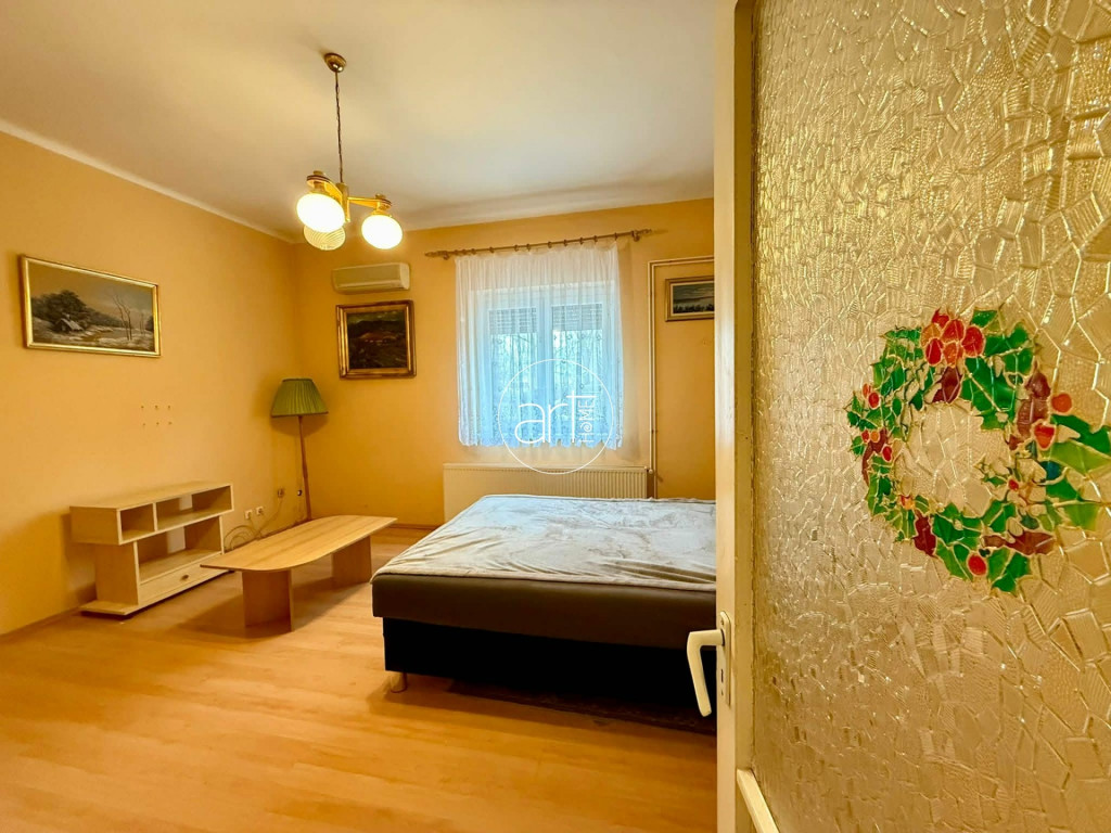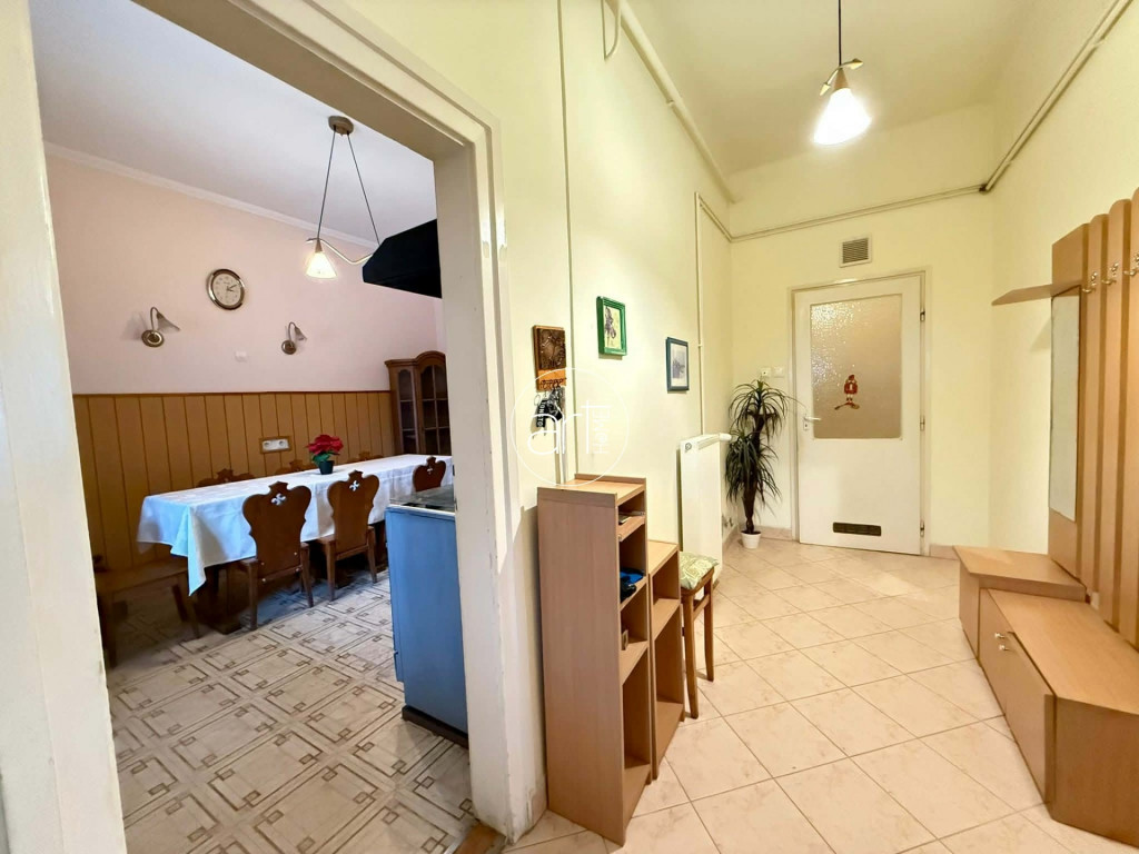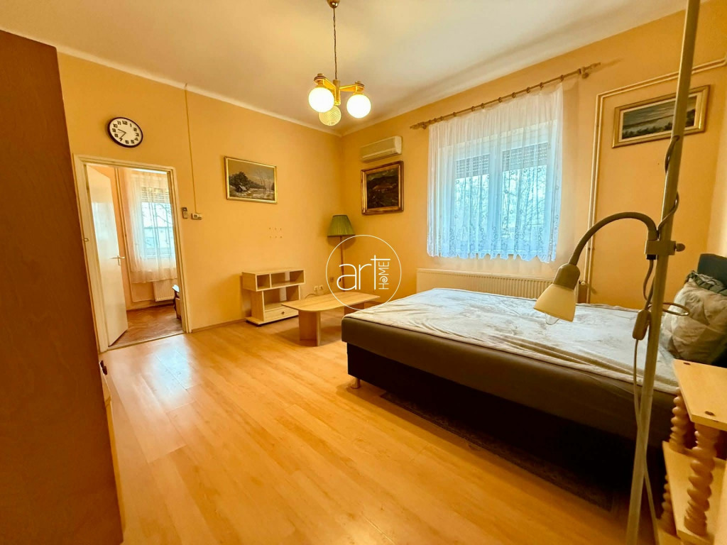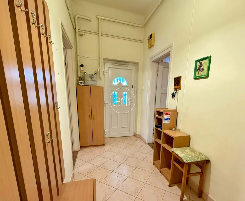 A terek világosak, jó elosztással rendelkezik a lakás, a konyhája hatalmas és tartozik még hozzá egy szintén óriási kamra. A fürdőszobája tusolós, a wc a fürdőszobán kapott helyet.