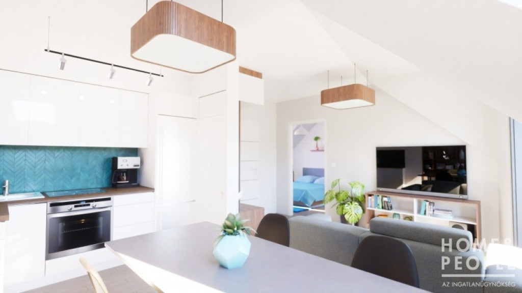 3 emeleten, emeletenként 1 db 50 m²-es, amerikai konyha + hálószoba + fürdőszoba + erkélyes lakás