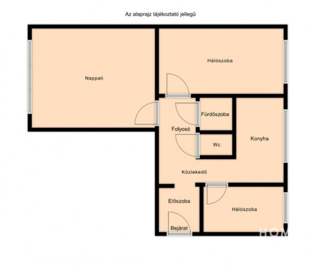 ▶ Elosztása: nappali + 2 hálószoba, konyha, fürdőszoba, közlekedő