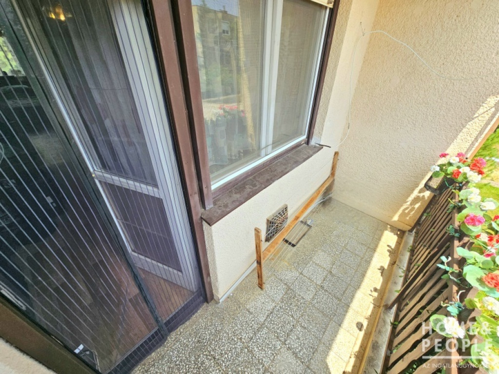 Elosztás: erkélyes nappali, hálószoba, konyha, fürdőszoba, wc, közlekedő