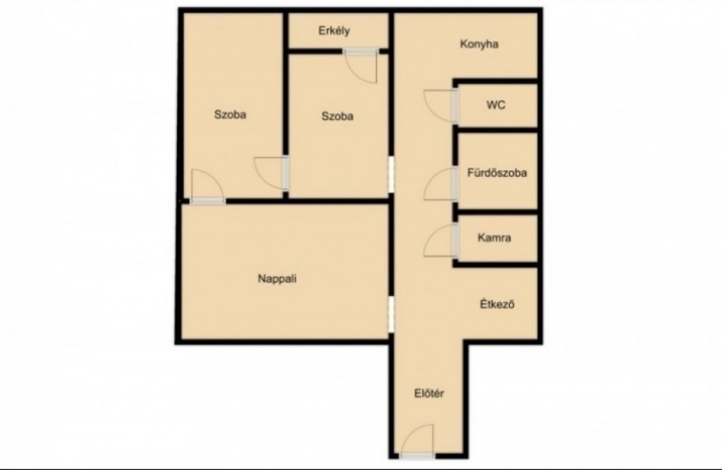 ▶ Elosztása: nappali, 2 db hálószoba, közlekedő, konyha, fürdőszoba, wc, kamra, erkély