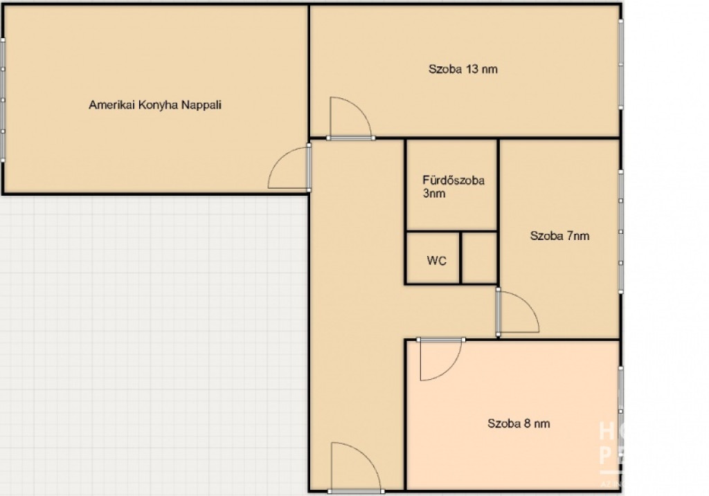3 Szoba + Amerikai konyha nappali