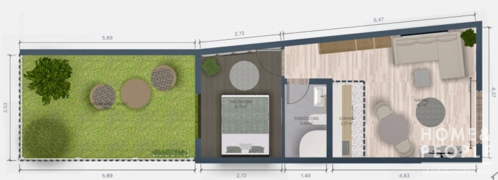 34,82 m² alapterületű földszintes lakás