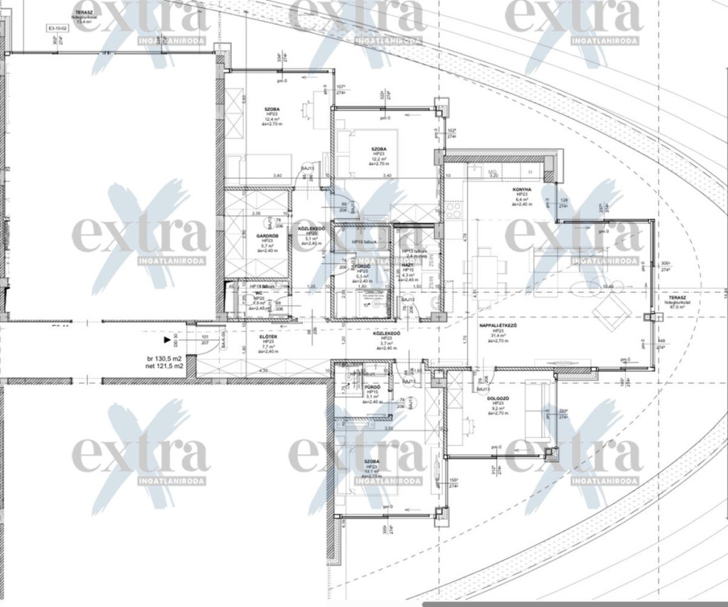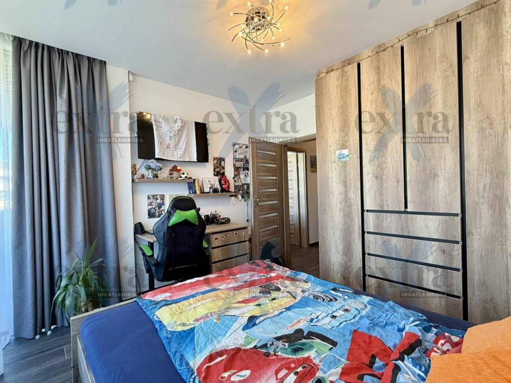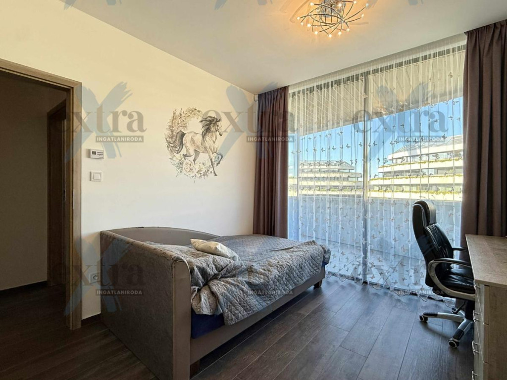 A lakásban 2 irányba találhatóak a szobák, így a gyerek birodalom 2 szobával és fürdőszobával az egyik oldalon, míg a szülői hálószoba saját (zuhanyzós) fürdőszobával a másik oldalon található, ugyanakkor még egy 9 m2-es dolgozószobának is maradt hely.