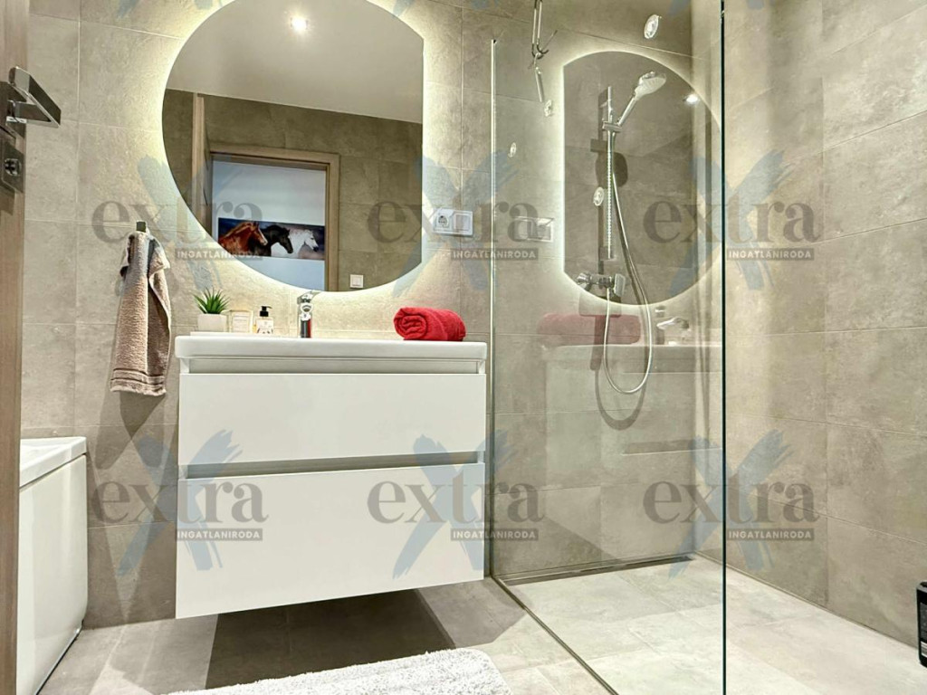 A lakás fűtéséről geotermikus fűtésrendszer gondoskodik padlófűtésen keresztül, míg a hűtést fancoil rendszer biztosítja. A lakás riasztórendszerrel/füstérzékelővel ellátott. A lakópark gyönyörű kertjét és a tavat folyamatosan gondozzák.