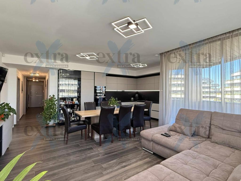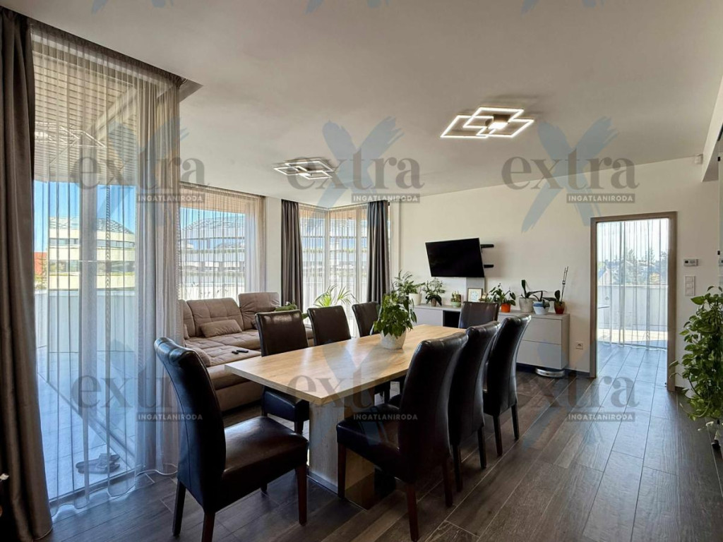 Szegeden, a Cédrus lakóparkban eladó ez a kivételes penthouse lakás, melynek minden ablaka tó felé néző, így csendes, és igazán varázslatos.A 121 m2-es lakótérrel rendelkező lakás amerikai/konyha/étkező nappalija a lakás középpontja, melyről a legtágasabb teraszrészre mehetünk ki. (A terasz összesen 87 m2-es).