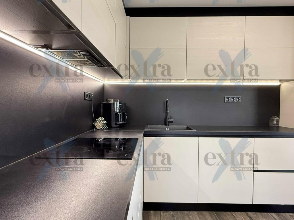 A konyhabútor nem az eredeti, építtető általi, hanem mindössze 1 éves, és mennyezetig bútorozva rengeteg pakolófelülettel rendelkezik, ugyanakkor a konyhagépek is megújultak. A konyha mellett egy mosókonyha található, beépített szekrénnyel.