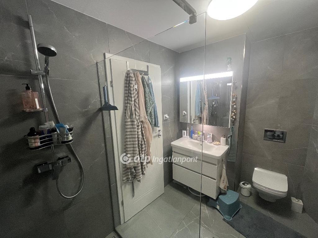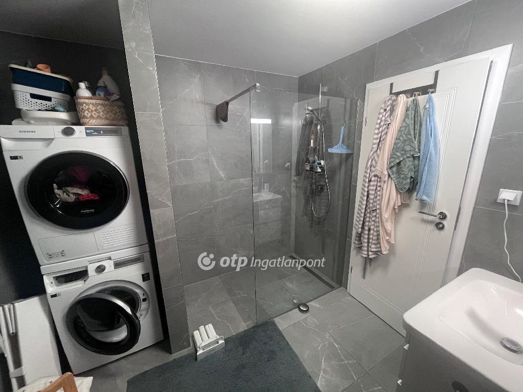 A lakás amerikai konyhás nappalival, három különnyíló szobával, fürdőszobával és külön WC-vel, valamint egy praktikus háztartási helyiséggel rendelkezik. A geotermikus fűtés és a minden helyiségben kiépített fan-coil rendszer modern, energiatakarékos és alacsony fenntartású megoldást biztosít, míg az egyedi árnyékolási rendszerek a kényelmet szolgálják a mindennapokban.