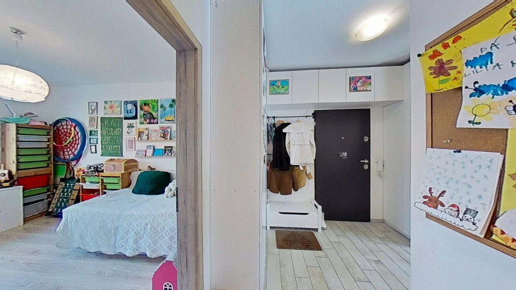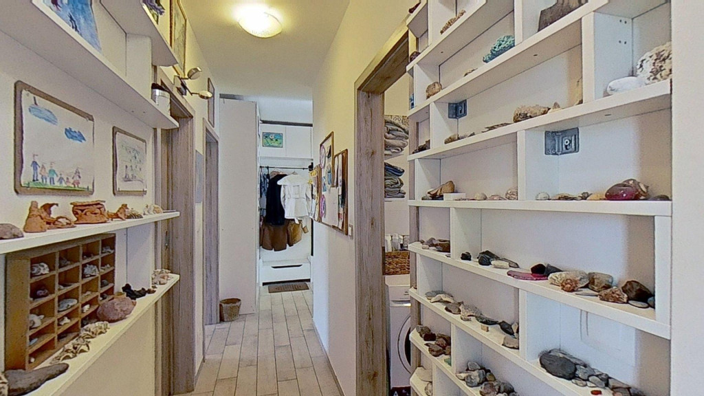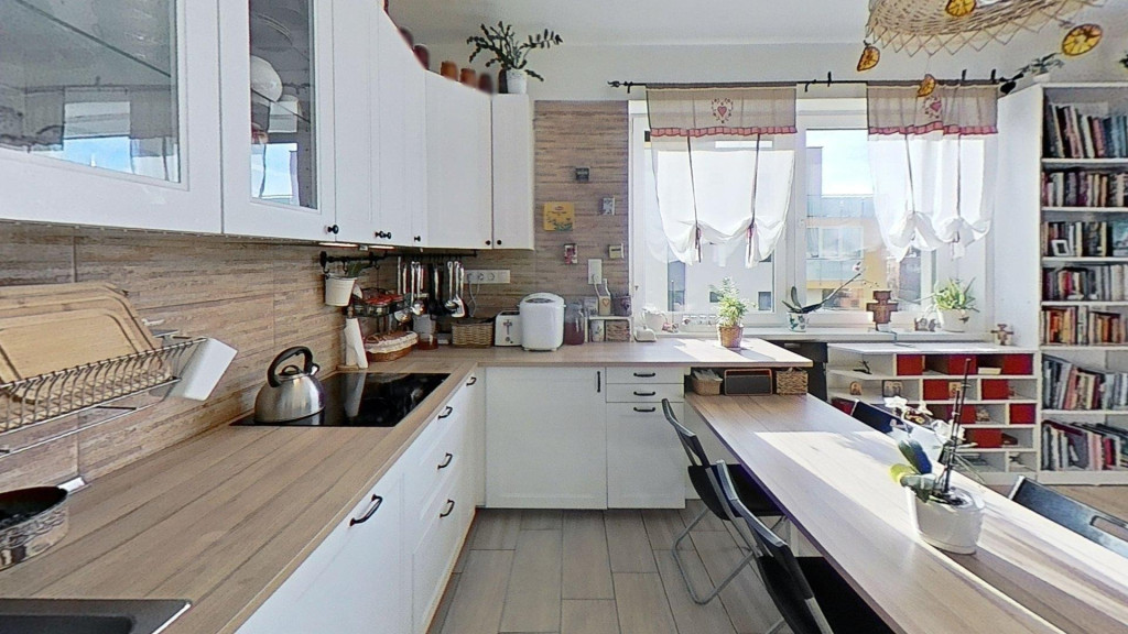 A lakás központi tere vitathatatlanul az amerikai konyhás nappali, beépített konyhabútorral és gépesítéssel (BOSH mosogatógép, Gorenje mikro, Whirlpool sütő, Elektrolux főzőlap, páraelszívó). A nappaliból csatlakozik le a 19 m2-es fedett erkély, mely kellemes helyszíne lehet akár baráti/családi összejöveteleknek. Kialakításra került a kádas fürdőszobán túl egy vendég WC is, mely a nappali és a gyerekszoba között helyezkedik el. A jelenleg 23 m2-es gyerekszoba két különálló szoba egyesítésével alakult ki a gardróbbal egyetemben. Az eredeti állapot némi átalakítással visszaállítható, így a lakás akár 4 szobássá is tehető. A lakás tartozékai a méretre készített bútorok és berendezések, amik színben harmonizálnak egymással, együtt alkotva egy esztétikus egészet. A jelenleg szülői hálószobából további 5 m2-es erkély csatlakozik le, mely szintén a belső kertre néz.