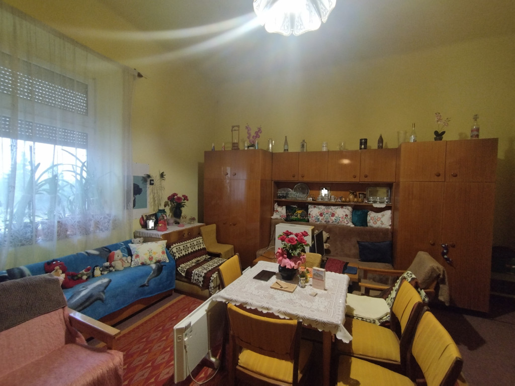 Eladó Szerencsen egy kivételes adottságokkal rendelkező, 97 m2 alapterületű,első emeleti lakás. Jelenlegi kialakításában 2,5 szoba,előszoba,konyha,kamra, fürdőszoba található benne. A szobák méretüknél fogva tovább oszthatóak,és a 4 m magas belmagasság akár galéria építését is lehetővé teszi. A lakás felújítandó egyedi elképzelés alapján. A szobák nagyméretű ablakai már hőszigeteltek. A társasház falai 80 cm vastagok,ezért nem is könnyen hűlnek ki,nyáron pedig nincs szükség klímára. A fűtése villany hőtárolós kályhákkal megoldott, illetve az egyik szobában egy jelenleg is használt cserépkályha van. A melegvizet villanybojler szolgáltatja. A gáz a lakásba nincs bevezetve,de a lépcsőházba igen.Saját,kizárólagos,nagyméretű pincéje van,illetve szintén kizárólagos használatú padlástere. A lépcsőházban összeszokott lakóközösség él. A közös költség 7.540 Ft /hó.
