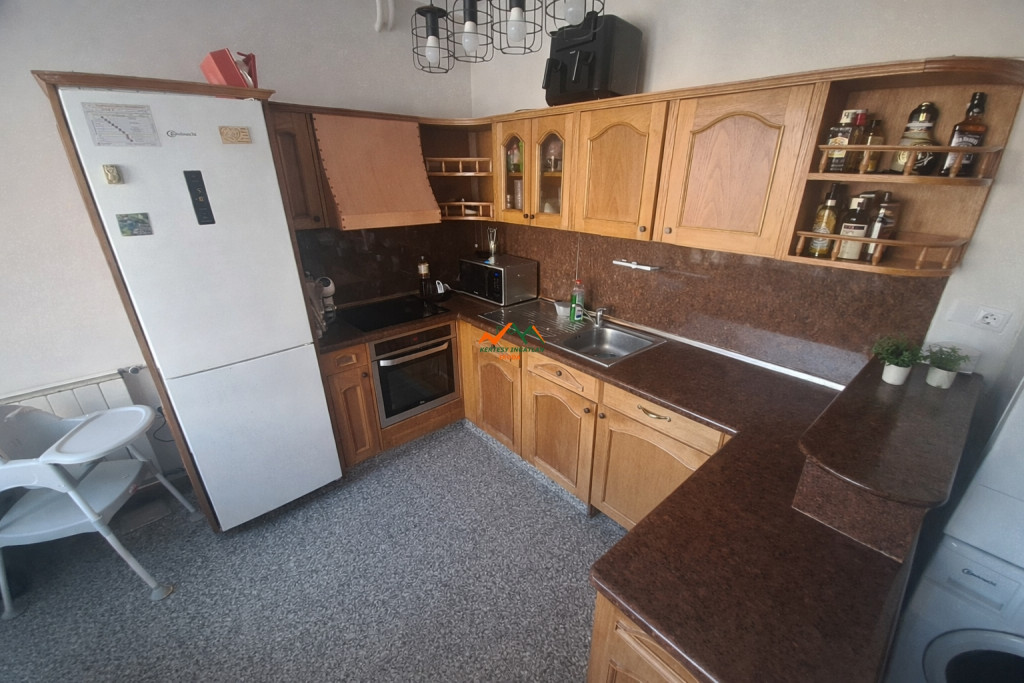 A lakótér több szinten helyezkedik el, jól átgondolt elrendezéssel. Az első lakószinten egy világos, étkezős konyha konyhabútorral,külön WC, valamint egy tágas, napfényes nappali található francia erkéllyel