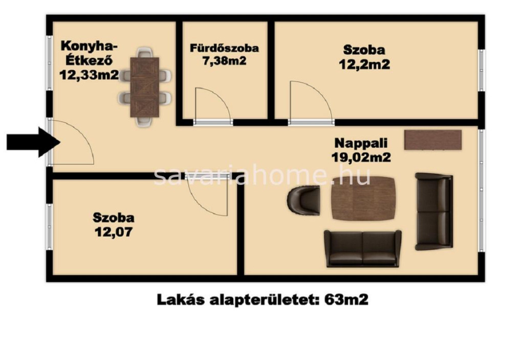 Az ingatlan elrendezése kiváló, élhető terekkel és praktikus kialakítással rendelkezik. Kelet–nyugati tájolásának köszönhetően egész nap világos, napfényes otthon.