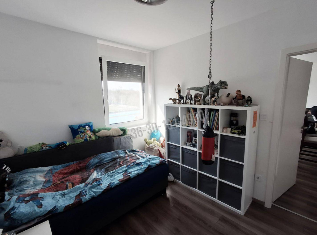 A 3. emeleti lakás 56 nm-es lakótérrel és 4,3 nm-es erkéllyel rendelkezik, mely a hálószobából nyílik. Az épület 30 cm-es vázkerámia téglából és 16 cm-es EPS szigeteléssel épült. A lakás fűtéséről házközponti távhő gondoskodik, padlófűtés rendszeren keresztül, minden lakás saját mérőórával rendelkezik. A műanyag nyílászárók háromrétegű üvegezéssel és redőnnyel kerültek beépítésre. A lakás hűtő-fűtő split klímával felszerelt. A modern, gépesített konyhabútor a konyhaszigettel a vételár részét képezi valamint a meghirdetett vételár tartalmazza a felszíni gépkocsi beállót és a saját tárolót is!