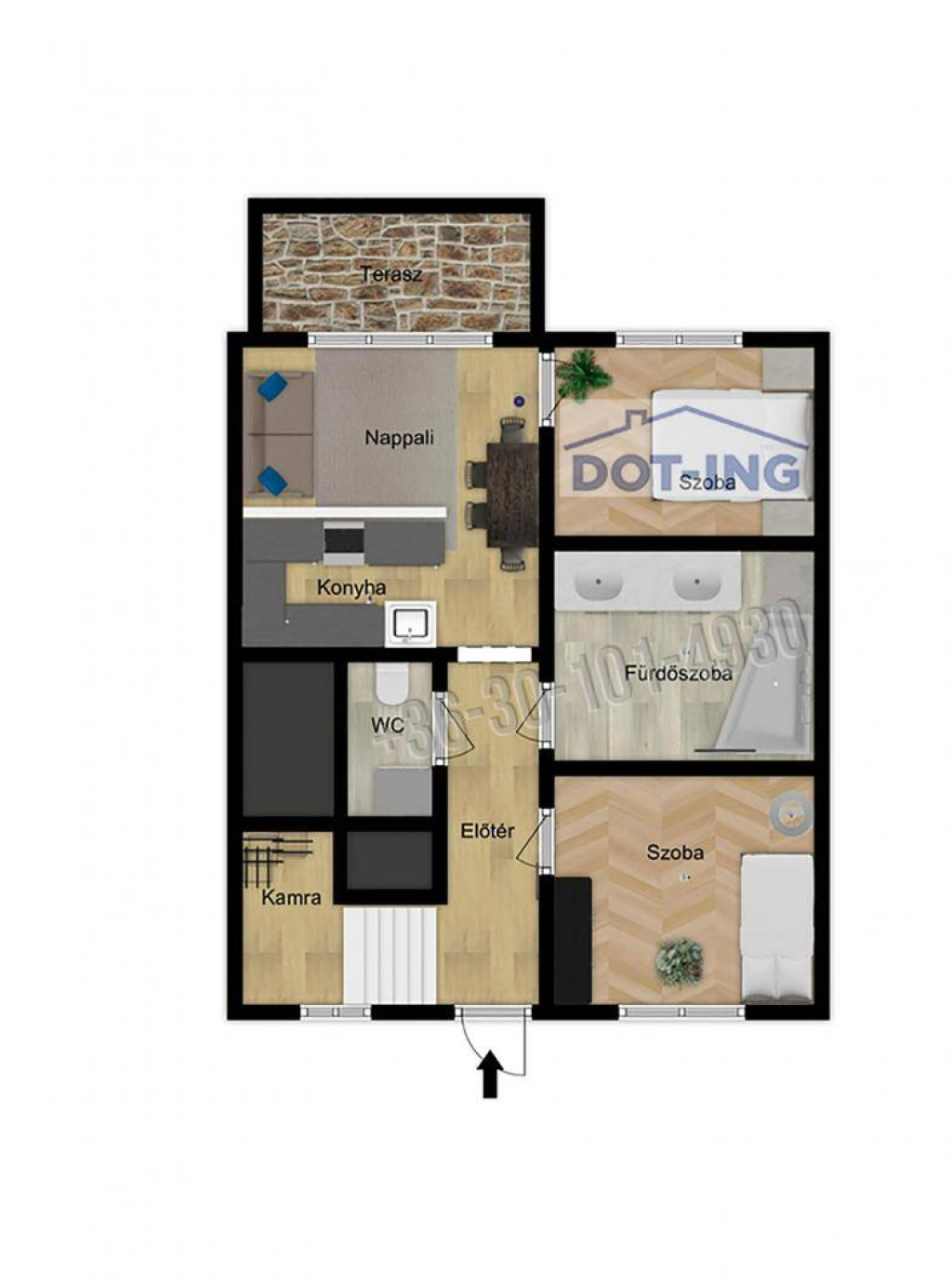 - Szobaszám 2 + 1 fél