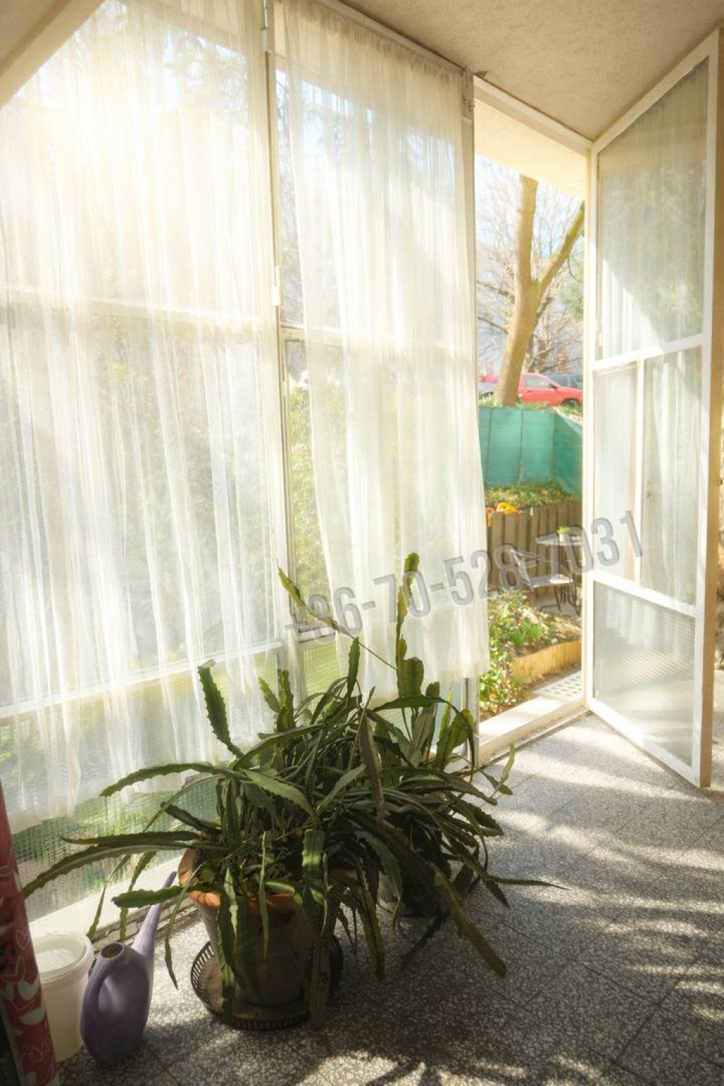 A loggia szélesre nyíló üvegezett ablakai lehetővé teszik, hogy ha kellemes odakint az idő akkor nyitottá tudjuk tenni. Előtte zöldterület található, úgyhogy kedvünk szerint pár tő paradicsomot, vagy gyönyörű virágokat is ültethetünk ide.