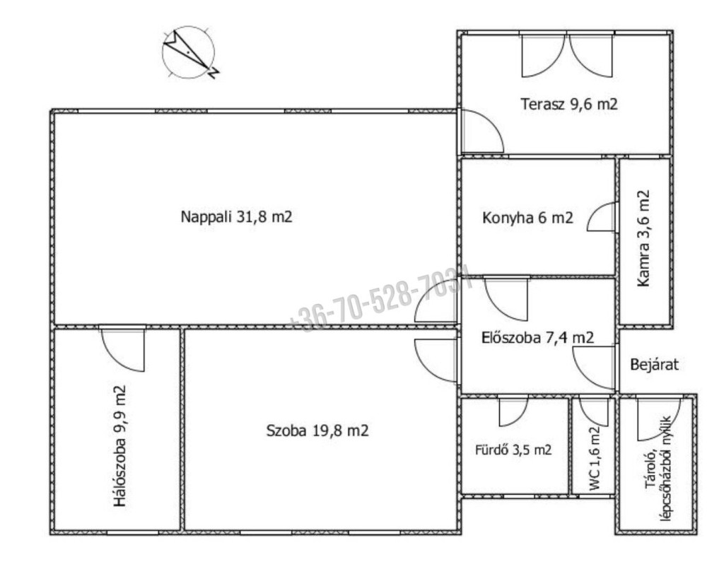 A konyhához hatalmas kamra tartozik, a hűtőszekrény is elfér benne. A bejárati ajtó mellett saját tároló nyílik a lépcsőházból, ide kerékpárt, babakocsit, vagy akár szerszámokat is biztonsággal elhelyezhetünk!