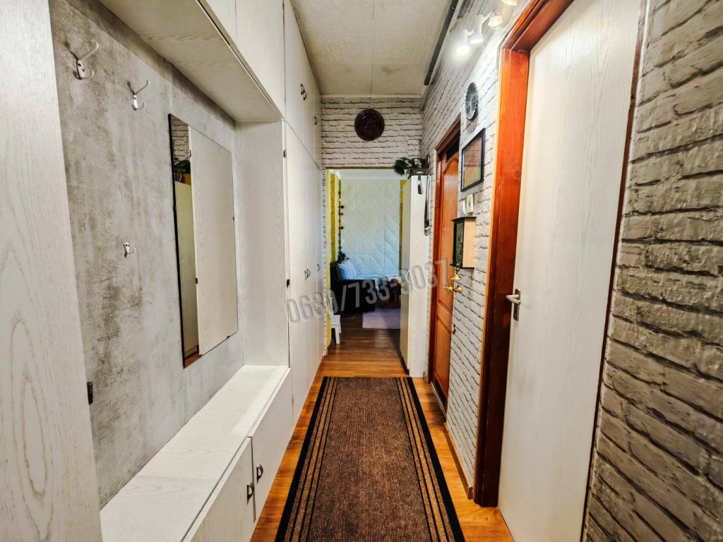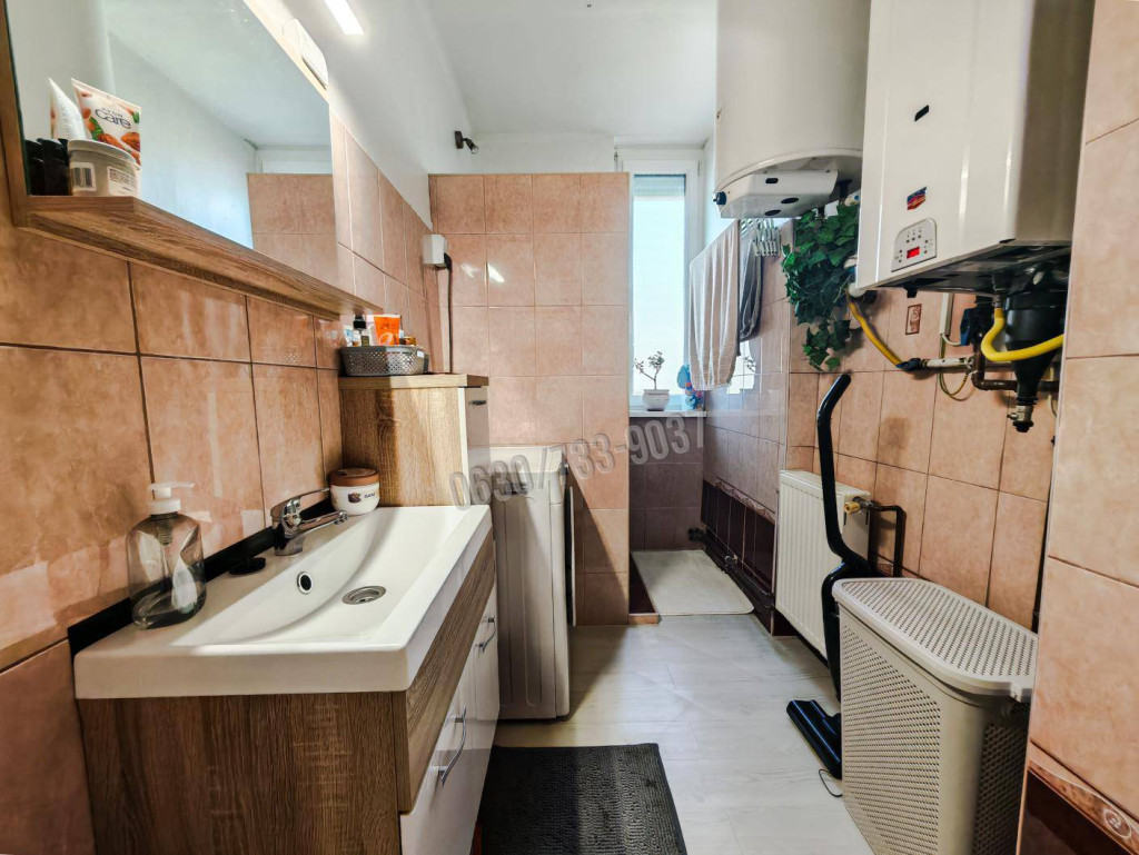Kiváló állapot: A lakás jó állapotú, a felújítás során a teljes vízvezeték-hálózat cseréje megtörtént. A fürdőszobában egy rendkívül praktikus épített zuhanyzó kapott helyet.