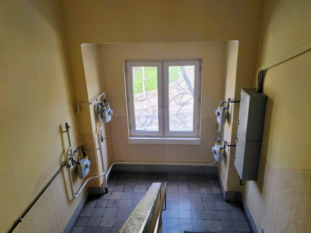 A lakás a 2 emeletes tégla építésű ház zárószintjén helyezkedik el, így nagyon nyugodt, csendes.