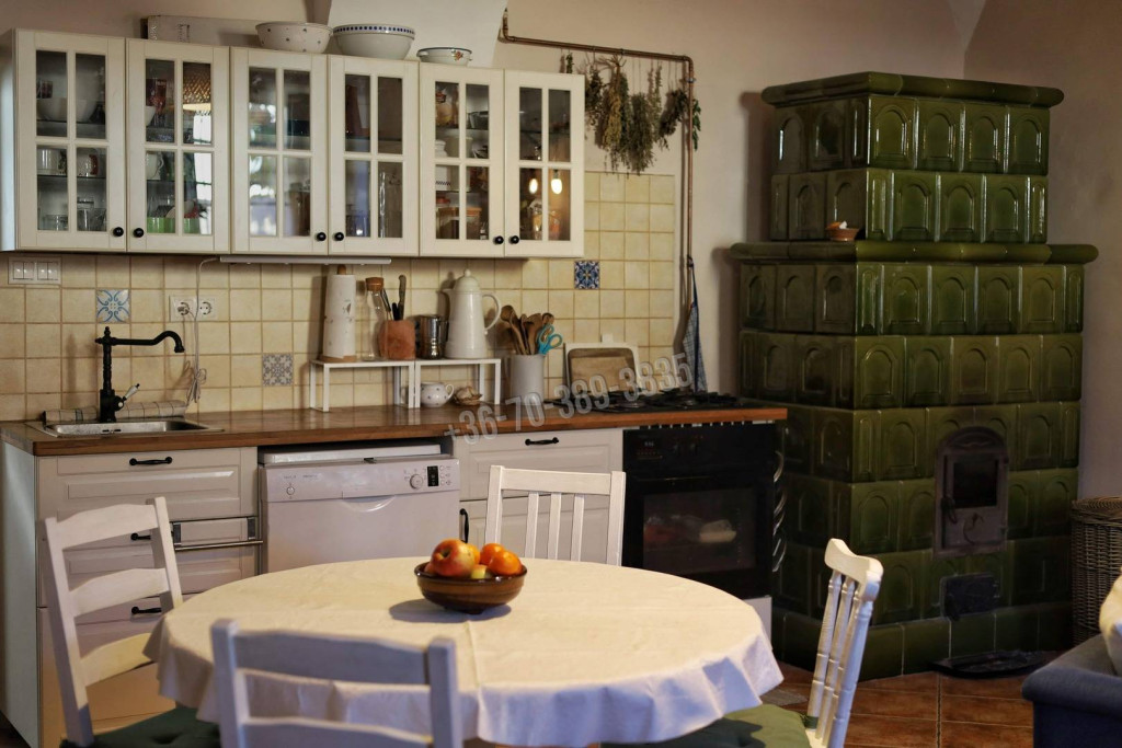 Hangulatos cserépkályha a nappaliban