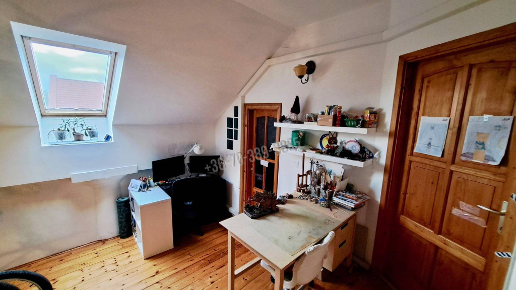 Emeleten: tágas előtér, 2 külön nyíló szoba, fürdőszoba ( ülőkádas)+ WC