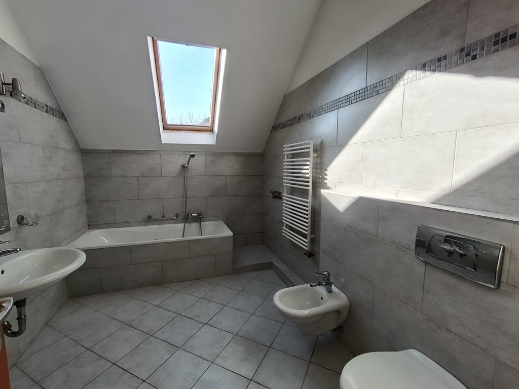 A tetőtér a 2000-es évek elején teljes körű felújításon esett át – beleértve a teljes tetőcserét is. A 105 m²-es lakás elrendezése praktikus és otthonos: három különálló szoba, egy amerikai konyhás- étkezős nappali, tágas fürdőszoba káddal és WC-vel, valamint külön vendég WC. A burkolatok járólap illetve a szobákban szalagparketta.