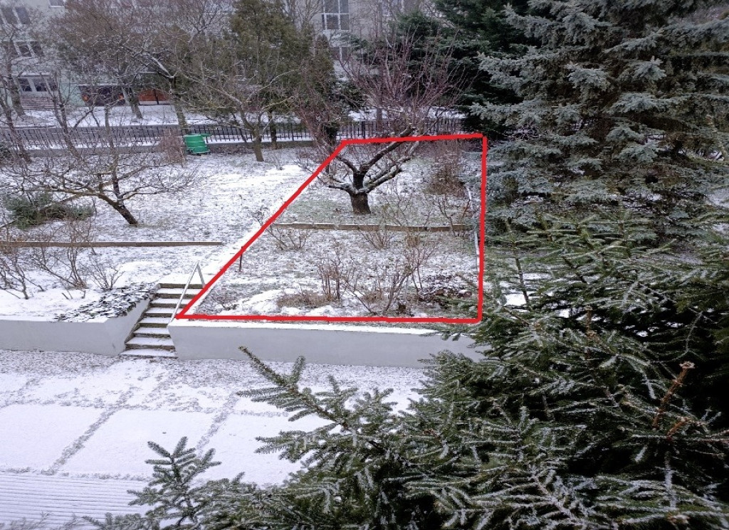 A nagy szoba erkéllyel rendelkezik, ahonnan a csendes kertre nyílik kilátás, és ahol a lakáshoz tartozó kb. 80 m²-es saját kertrész is megtalálható – egy igazi ritkaság, ahol reggeli kávé, virágok vagy egy nyugodt délután is helyet kaphat.