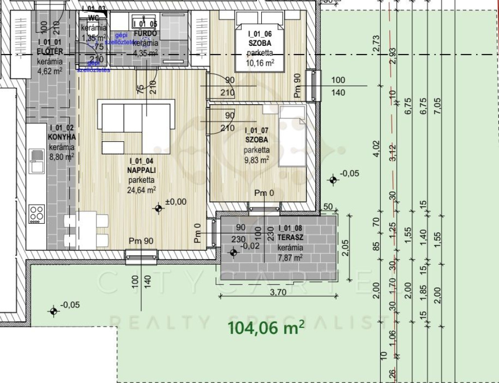 - Telekterület 104 m2