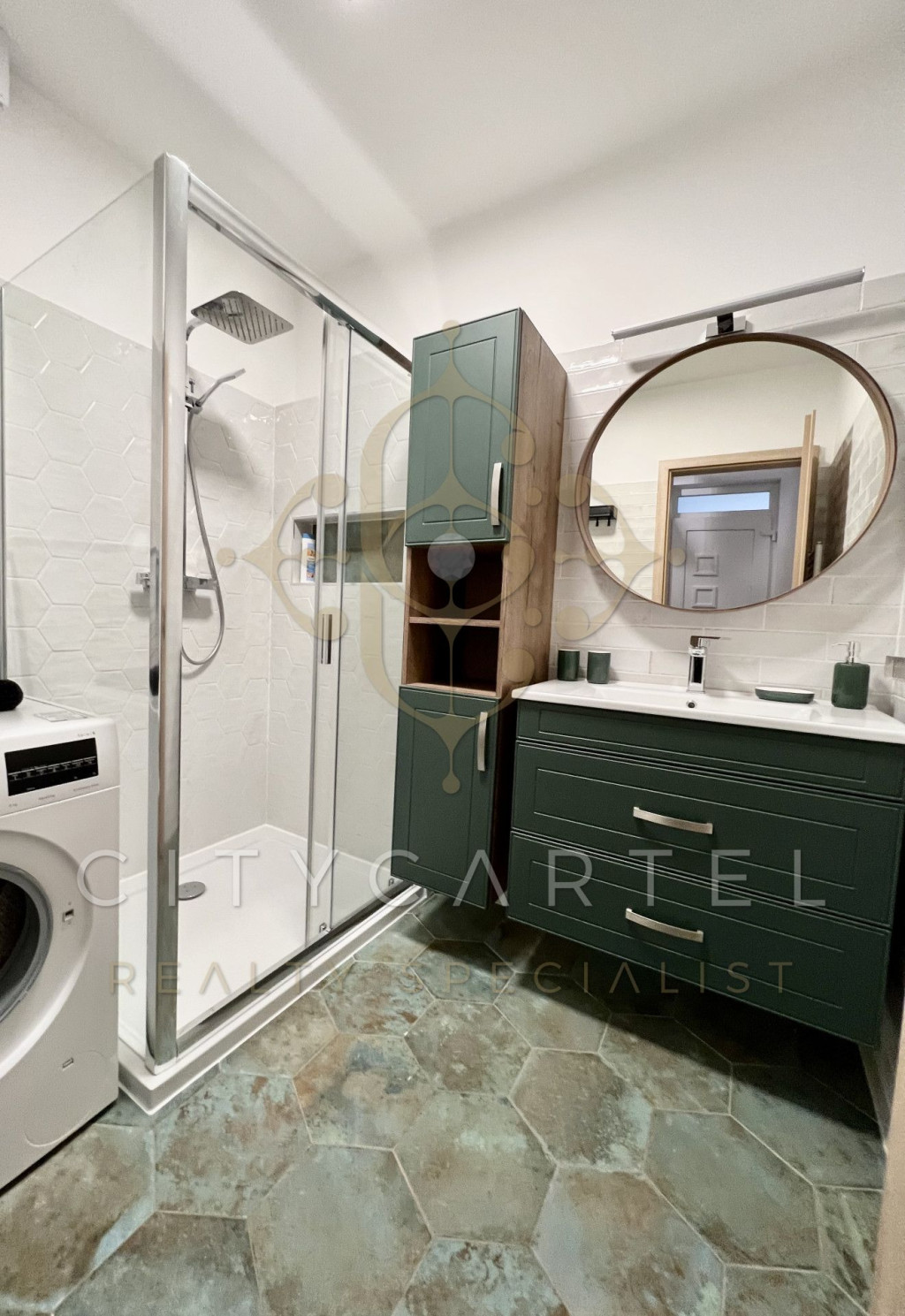 Beosztását tekintve egy amerikai konyhás nappali+étkező egy légtérben, kettő hálószoba, egy előszoba, egy WC, egy zuhanyzós fürdőszoba, valamint egy erkély került benne kialakításra.