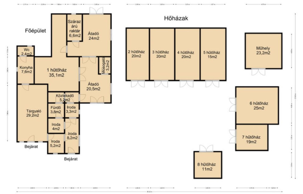 - Telekterület 2 900 m2