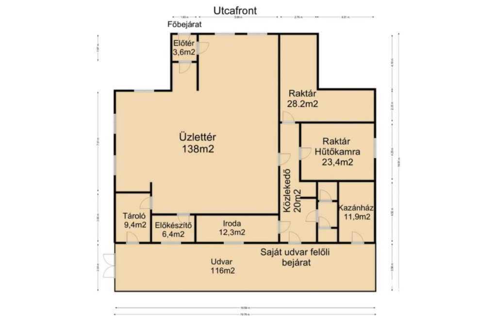Az épületben lévő teljes felszerelés, polcok, hűtők valamint a teljes árúkészlet a vételár részét képezi.