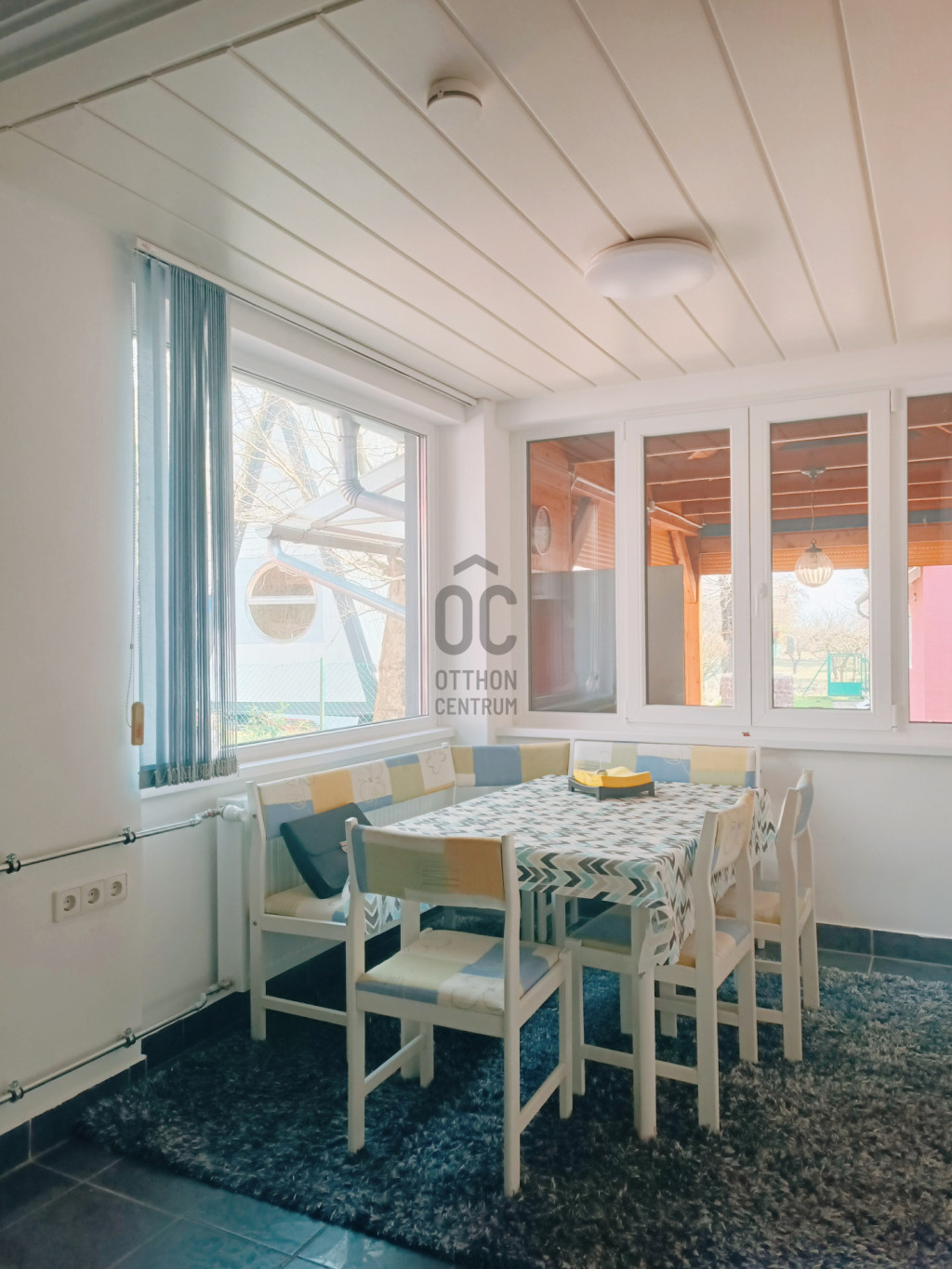 Garázsépület, kövezett bejáró, távirányítós tolókapu, központi kódos zárrendszer, öntözőberendezés a teljes kertben, teraszlezáró rolórendszer, központi gázfűtés, hűtő-fűtő klímák minden helyiségben, spotlámpás világítórendszer, felszerelt konyha, mosó- és szárítógép, hőszigetelt falak, 3 rétegű thermo nyílászárók, mindez szinte új állapotban!