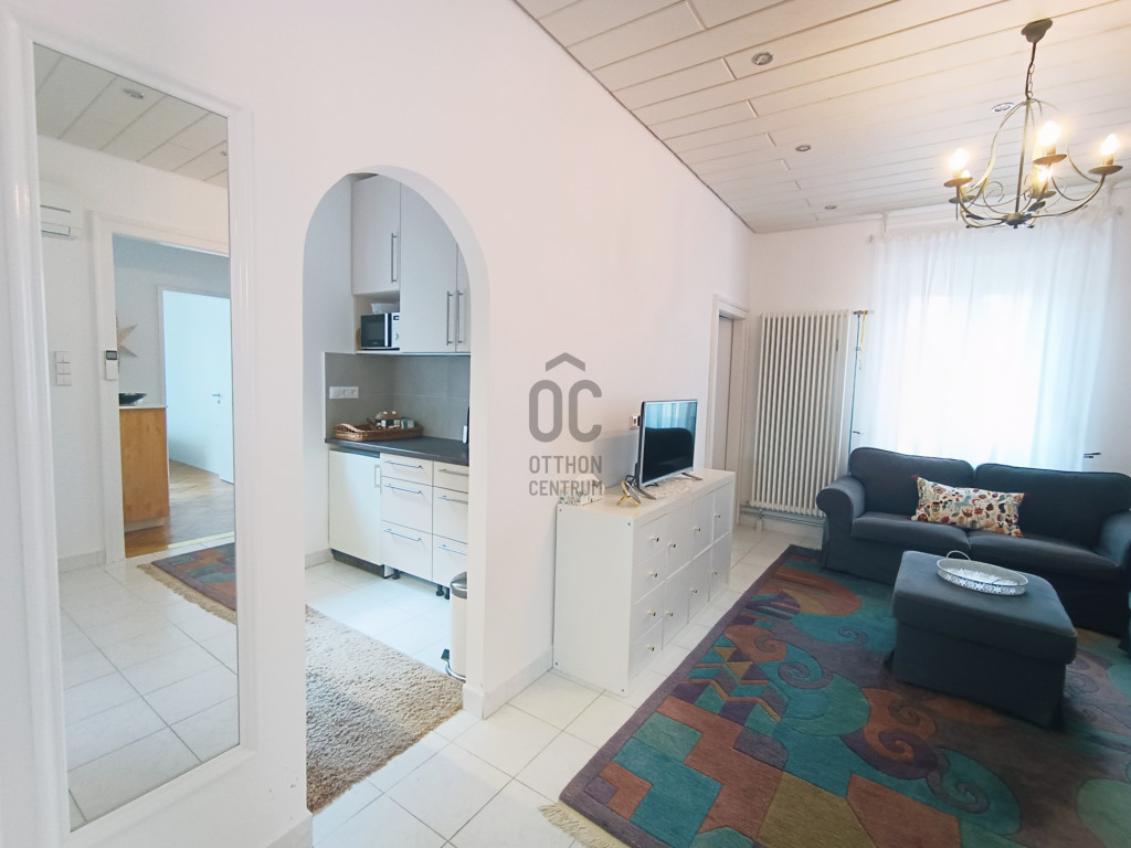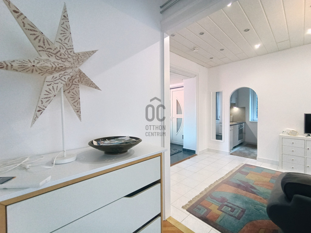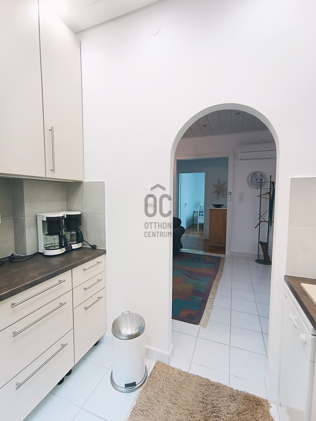 A vastag falazaton belül ma már egy teljesen felújított, modern, tágas és napfényes lakóházat találunk, amelynek a belmagassága 290 cm!