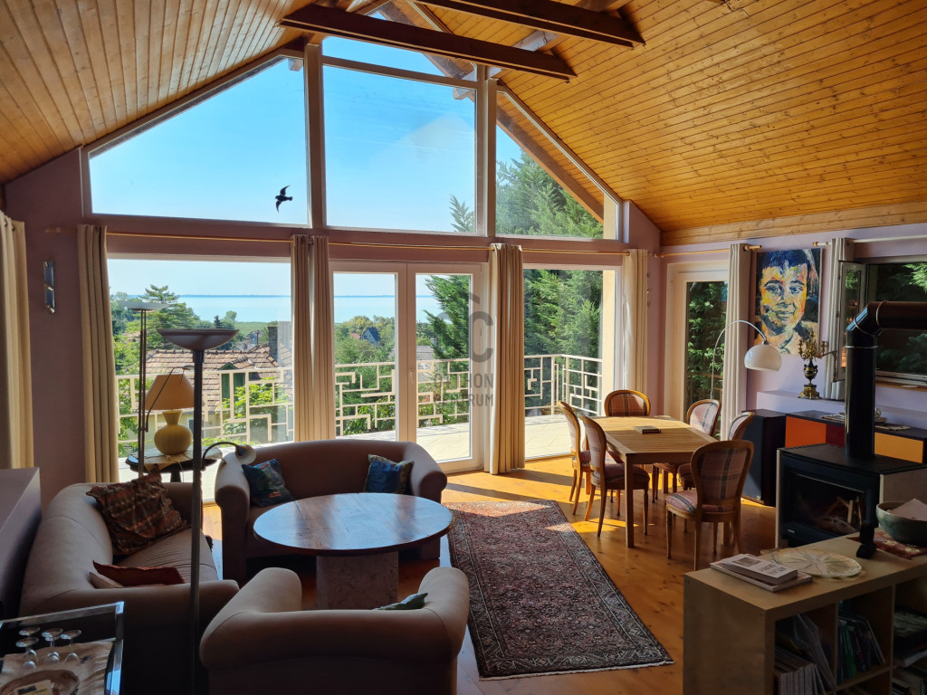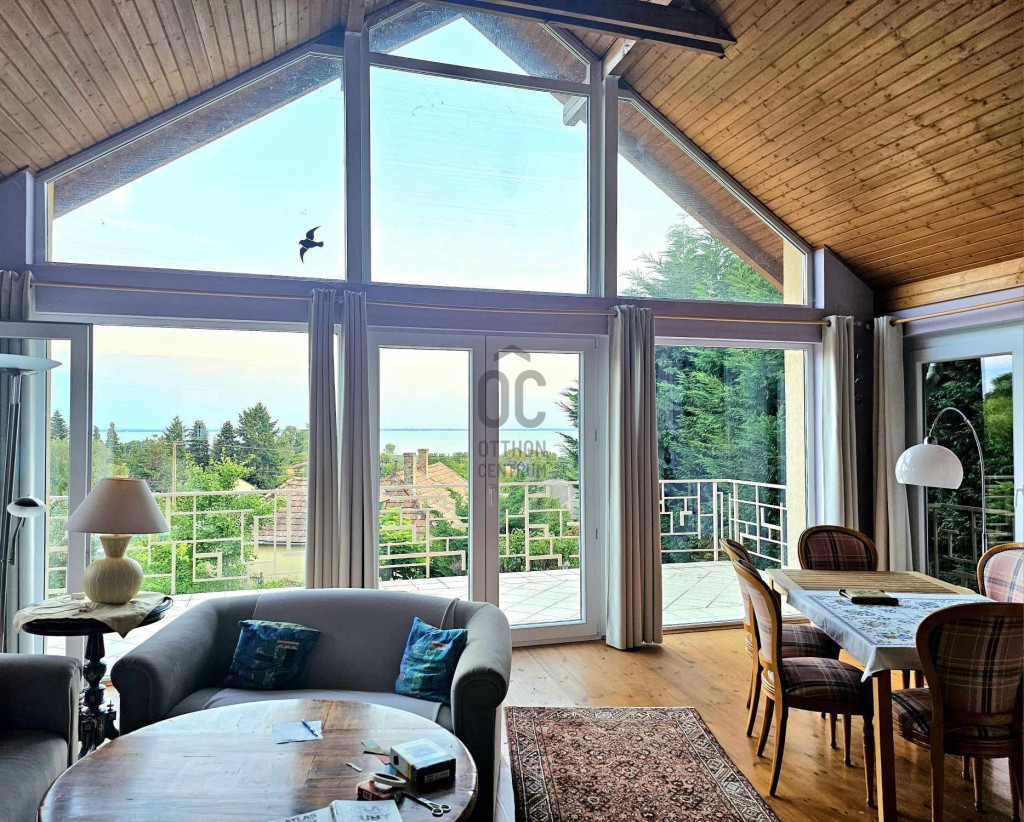 Badacsonyban vált eladóvá ez a különleges atmoszférával rendelkező épület, mely egyedi kialakításával egyből kitűnik az őt körülölelő ingatlanok közül. A területről és a ház egészéből meseszép a panoráma a Balaton vizére, de ha ez nem lenne elég, a Badacsony is ott magasodik az épület mögött.A belterületi, 1519 négyzetméteres telken a jelenlegi tulajdonos tervei és álmai alapján készült el 2005-ben a hétvégi házként bejegyzett ingatlan – mely családi otthonnak is kitűnő választás lehet -. Az épület alapjául egy már meglévő bazaltkő pince szolgált, ez került átépítésre és bővítésre korszerű anyagok felhasználásával.