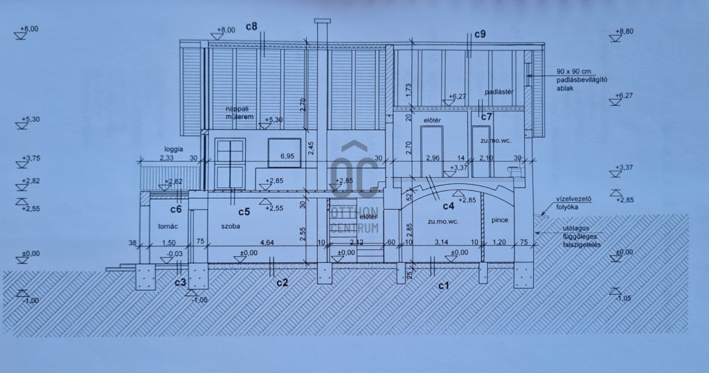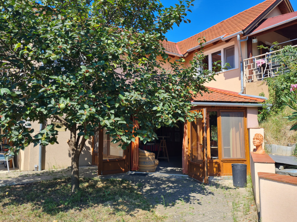Az emeleten lévő helyiségek közül a teljes üvegfelülettel ellátott nappali/műterem és a hozzá tartozó terasz olyan egyedi és megismételhetetlen hangulatot áraszt, hogy itt egyből az az érzése az embernek, hazaért...
