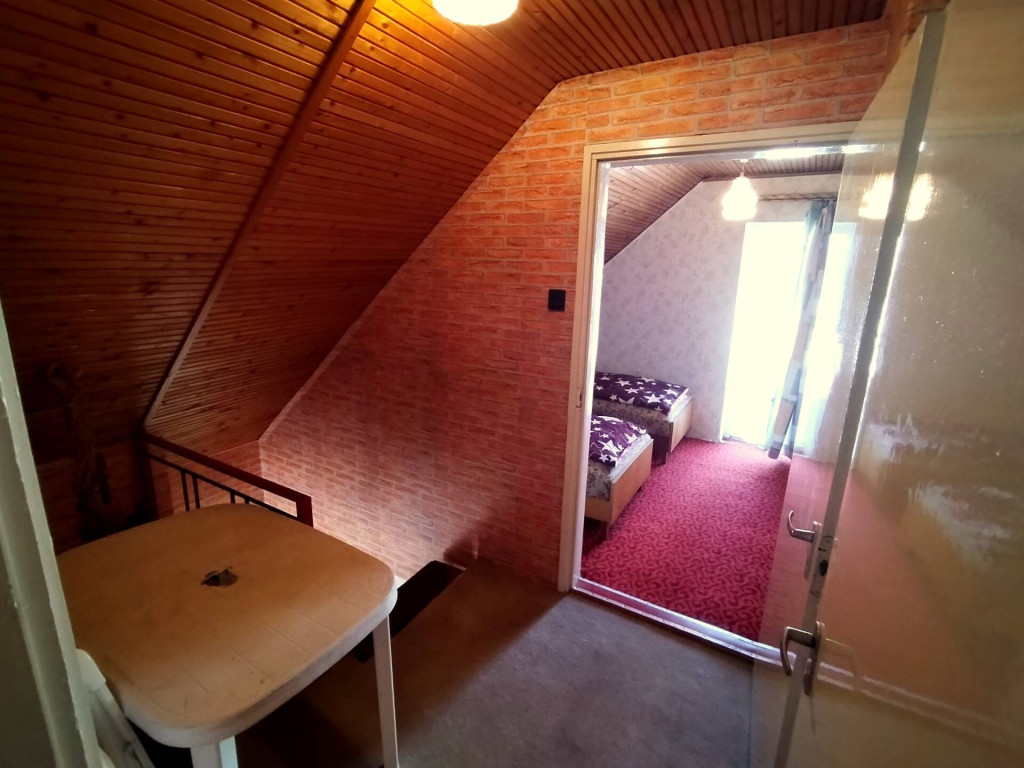 In a popular part of Balatonmáriafürdő, right on the shores of Lake Balaton, we are offering for sale a semi-detached vacation home with excellent features, situated on a 615 m² lot. The lot features two separate buildings, offering an ideal opportunity for larger families, multi-generational vacations, or even for hosting guests or renting out. The larger building has a floor area of 59 m² and a two-story layout. The lower level features a living room, a bedroom, a kitchenette, as well as a bathroom and a separate toilet. On the upper level, two separate rooms are accessible from a small foyer. A unique feature of the rooms is that each has its own balcony of approximately 10 m²: one faces the street, while the other overlooks the quiet, green part of the property, providing a pleasant place to relax on summer days. On the property, extending from the main building, there is also another, smaller house measuring 21 m². The lower level of this house features a room-like space, a kitchen, and a bathroom, while the upper level—accessible from the outside—has been designed as a spacious, elongated room. Between the two buildings is a 25 m² covered terrace, which is an ideal spot for family meals, gatherings with friends, or even a pleasant summer barbecue. Additionally, a 10 m² terrace has been built at the entrance to the main house, providing the perfect setting for peaceful, cozy summer evenings.The properties have a total of 6 rooms; the buildings feature exposed brick walls, are structurally sound, are in average condition, and are currently habitable. Minor renovations have been carried out recently, such as the installation of laminate flooring in several rooms. However, modernization or even a complete renovation in the future could open up new possibilities for the property. The windows are currently wooden; their replacement is recommended at a later date. The buildings have slate roofing. There is currently no heating system installed in the buildings, so the new owner can design the solution that best suits their needs. Water, electricity, and sewer connections are available on the lot, and a gas line is also present on the property. One of the property’s greatest advantages is its excellent location—the shore of Lake Balaton is just a few minutes’ walk away, so summer swimming, lakeside walks, and the atmosphere of Lake Balaton can become part of your daily life. There is also a wonderful public beach nearby, offering ideal relaxation for the whole family.The area’s infrastructure is excellent: there are restaurants, shops, a train station, and a boat station nearby, so all essential services are easily accessible even without a car. The town also has a school, kindergarten, and daycare center, which is a major advantage for longer stays or even permanent residency.This property is an excellent choice for anyone looking for a vacation home near Lake Balaton who also appreciates the opportunities offered by a larger lot and the flexibility provided by the two buildings. It is ideal for larger families, multi-generational vacations, groups of friends, or even as an investment, as the two separate buildings allow for hosting guests or renting out space. Due to the property’s excellent location and the possibilities offered by the two separate buildings, this is a rare opportunity in the area. If you’re looking for a Lake Balaton vacation home that offers both creativity and potential for appreciation, don’t miss out on this opportunity. It’s definitely worth seeing in person!This property is fantastic, isn’t it? For more detailed information and to schedule a viewing, please call! Whether you’re buying or selling, feel free to contact Otthon Manager’s agents! We’ll help you achieve your goals, anywhere in the country! If you need a favorable loan offer, our advisor will select the best option for you from a range of banks following a free consultation! Have a wonderful and productive day!