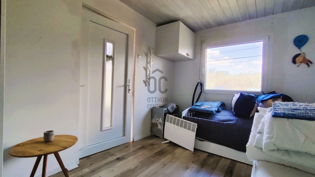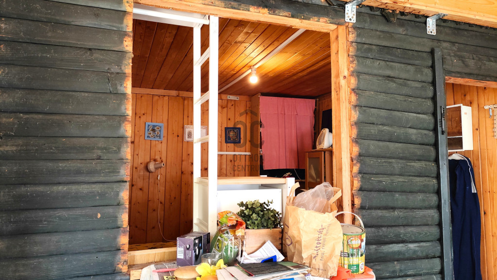 Az 1980-as években téglából épült, 12,5 m²-es kis ház egy 10 m²-es, a közelmúltban felújított szobát foglal magába, amely letisztult, világos térként szolgál pihenésre. Hozzá külön bejárattal egy 2,5 m²-es fürdőszoba csatlakozik. A másik épület egy összesen 21,5 m²-es faház, amelybe belépve egy 7,7 m²-es nappaliba érkezünk, innen nyílik a 9,5 m²-es lakószoba – egyszerű, de barátságos elrendezéssel. Külső megközelítéssel érhető el az ugyancsak könnyűszerkezetes, 3,3 m²-es főzőhelyiség, valamint az 1 m²-es toalett, így a funkciók jól elkülönülnek, mégis egységet alkotnak.