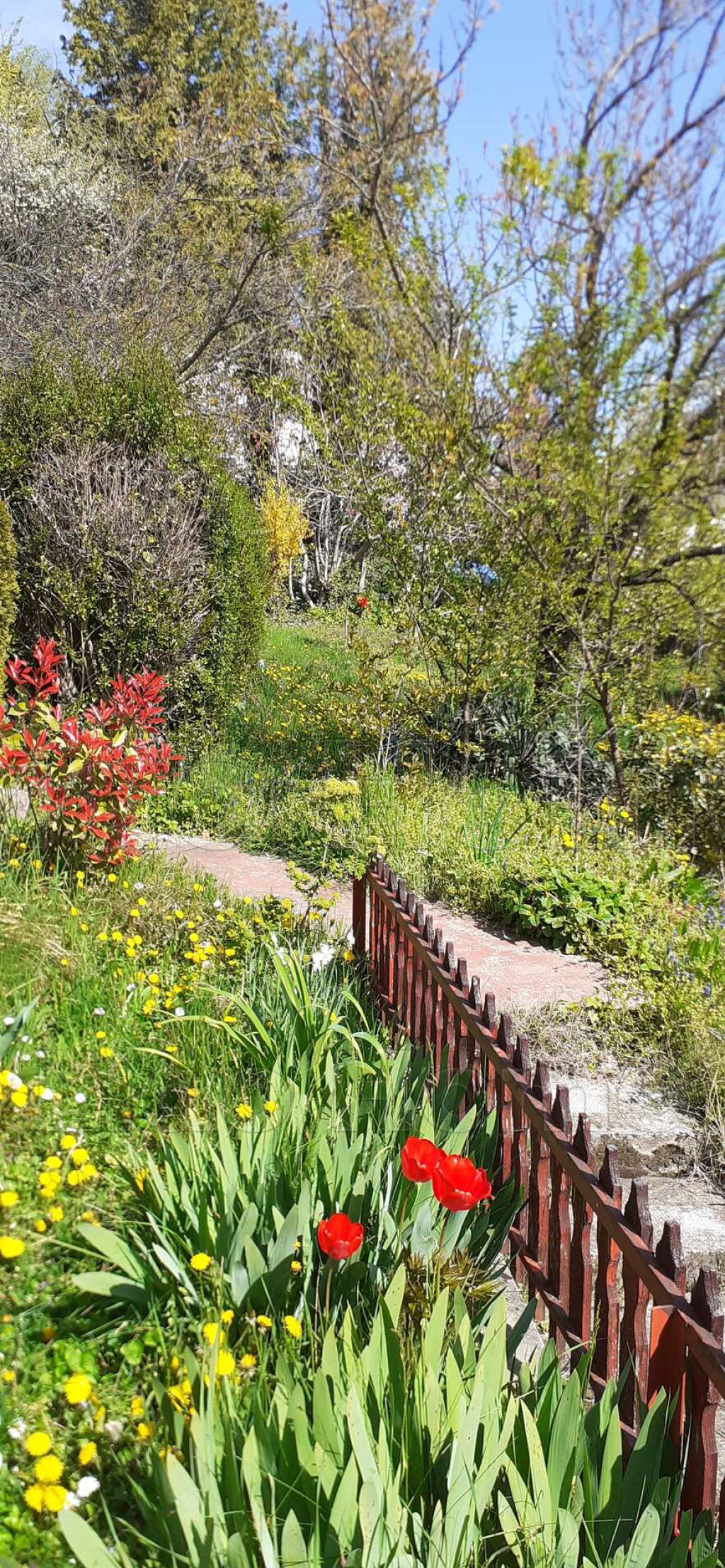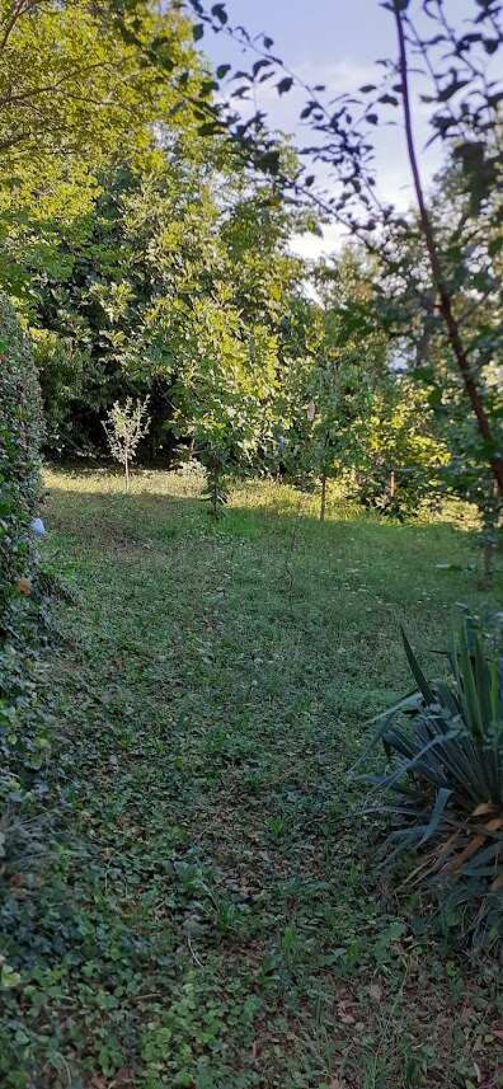 -Teraszos, több részes kert sokféle gyümölcsfával.