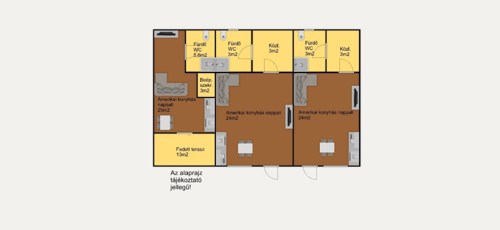 • 3 fürdőszoba (minden egységhez saját)