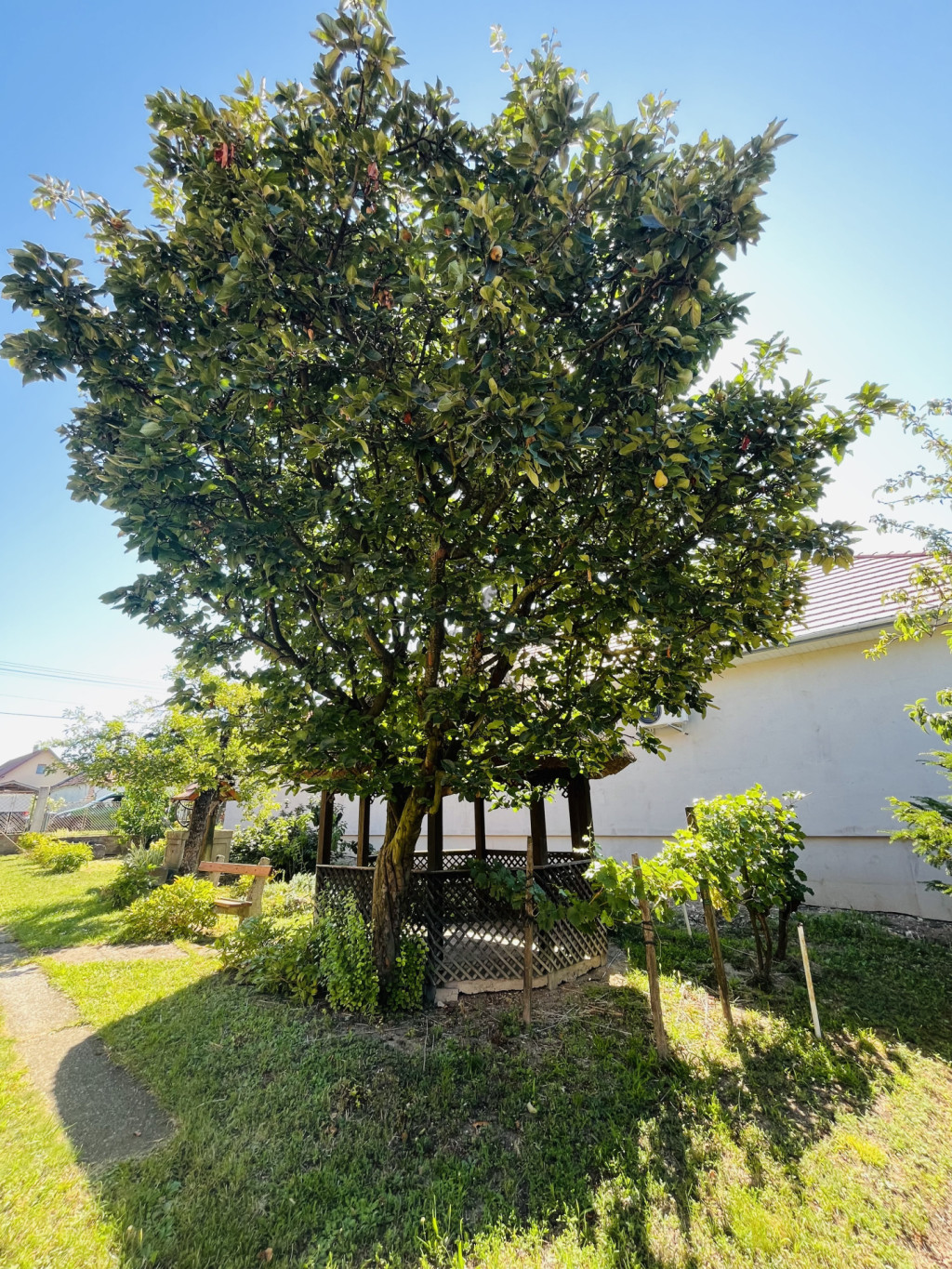 A kert hátuljából nyílik még egy plusz terület, ami jelenleg szőlőtermesztésre szolgál.