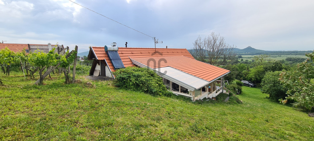 A téglalap alakú telek közepén helyezkedik el az épület, és csak egy közeli szomszédja van. Az alsó szinten találunk egy konyha-étkező-nappalit, egy fürdőszobát, és egy hálószobát, mely közvetlen terasz kapcsolatos, míg a tetőtérben egy-légterű szoba lett kialakítva. A 15nm-es borospince a nappali alatt húzódik, külső bejáraton át közelíthető meg. Az ingatlan víz, villany közművekkel rendelkezik, meleg víz ellátását villany bojler adja, melyre a napelem is rásegít, ha szükséges.