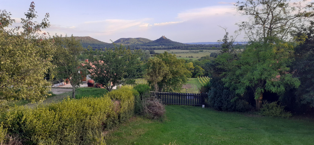 A kertben gyümölcsfák, egy hatalmas cseresznyefa, füge és pár sor szőlő is található, minden pontjáról lélegzetelállító tanúhegyes, és balatoni örök panorámában gyönyörködhetünk!