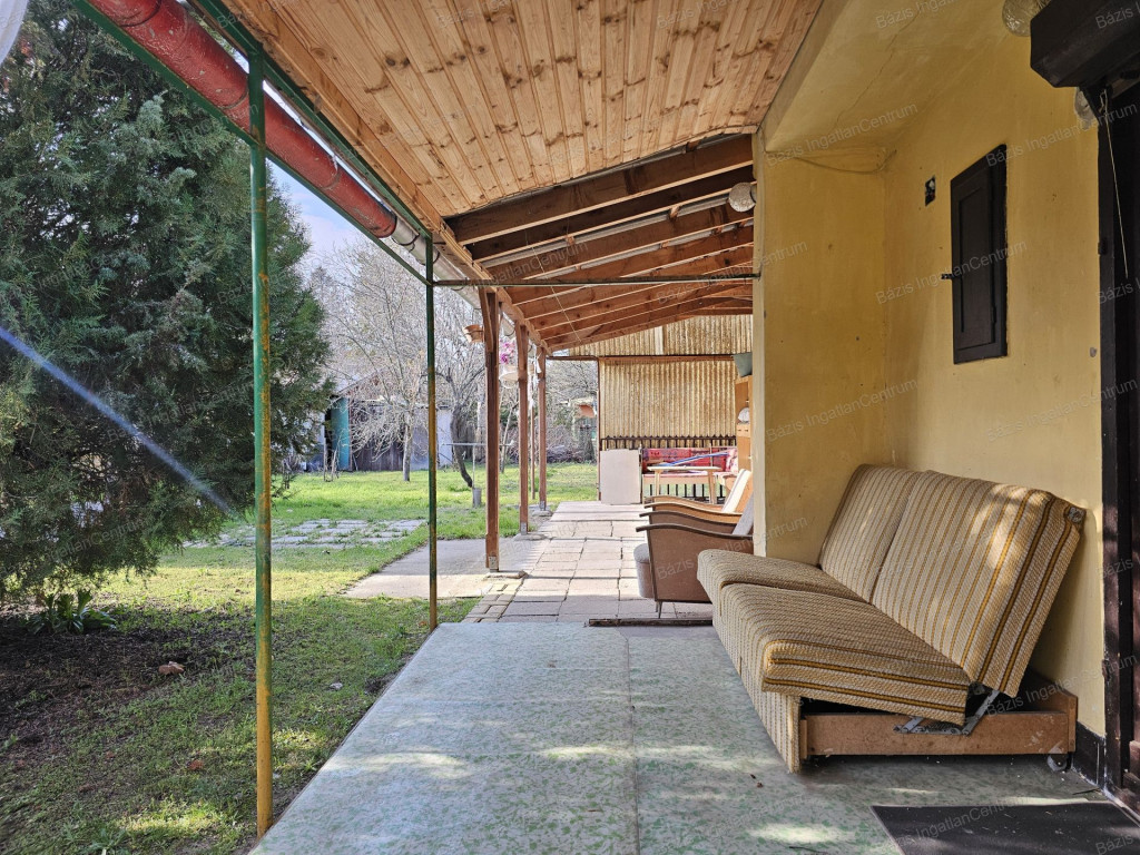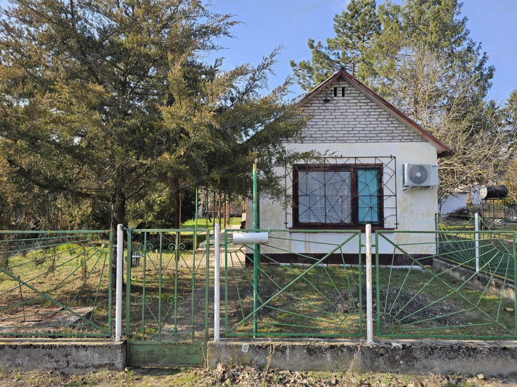 Bács-Kiskun megye Kunfehértó kedvelt üdülőterületén, a strandtól kb. 500 méterre tégla falazatú nyaraló eladó. Az ingatlanban egy nagyobb és egy kisebb hálószoba, egy előszoba, egy tágas konyha - étkező, valamint egy fürdőszoba+ WC kapott helyet. A ház fűtését jelenleg egy kályha biztosítja, a hűtésről pedig klíma gondoskodik. Villany és víz közművel rendelkezik az ingatlan, a szennyvízelvezetés derítővel megoldott, gázvezeték a telek előtt található. A 39 m2-es épülethez egy 20 m2-es fedett terasz kapcsolódik, mely baráti összejövetelek kiváló helyszínéül szolgál. Ezen kívül a 450 m2-es zöld, fás, virágos udvaron egy fedett kiülő is rendelkezésre áll. Parkolásra fedett autóbeállóban van lehetőség. Az ingatlan felújítandó állapotban van, így lehetősége nyílik arra, hogy saját ízlésére formálja az épületet. A vételár részét képezi két műanyag ablak, melyek már nem kerülnek beépítésre a jelenlegi tulajdonos által az ingatlanba.A nyaraló akár befektetési céllal is jó választás lehet, hiszen Kunfehértó igen kedvelt helyszín a nyári szezonban, köszönhetően a közeli strandnak, a horgászati lehetőségeknek, illetve a fesztiváloknak.