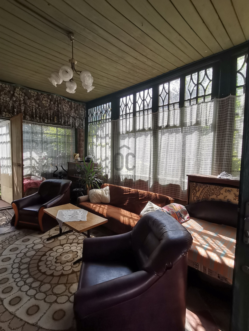 A régi, hatalmas ablakos télikert déli tájolású, még télen is besüti a nap, a belső szobákat így védi és hőszigeteli.