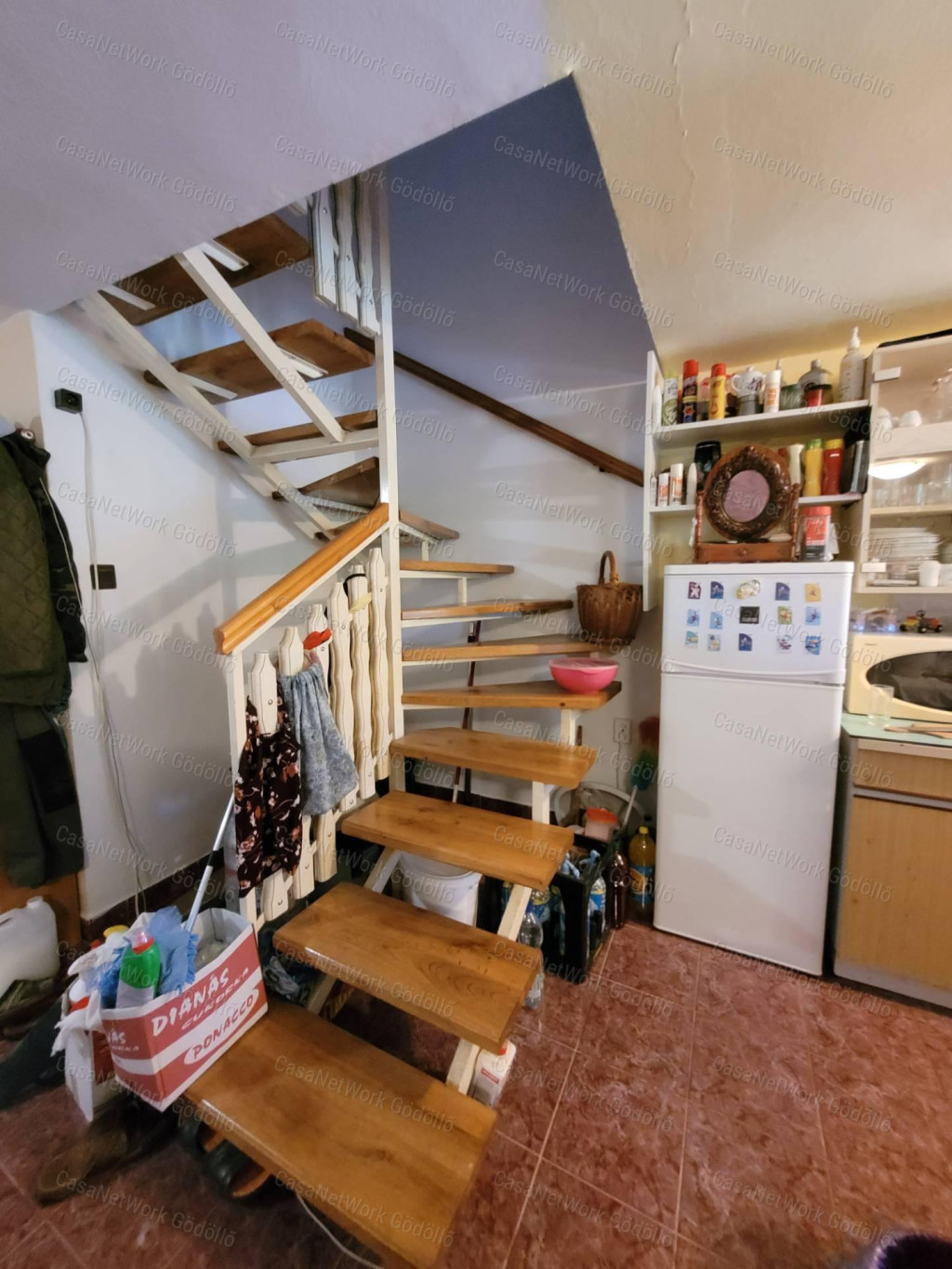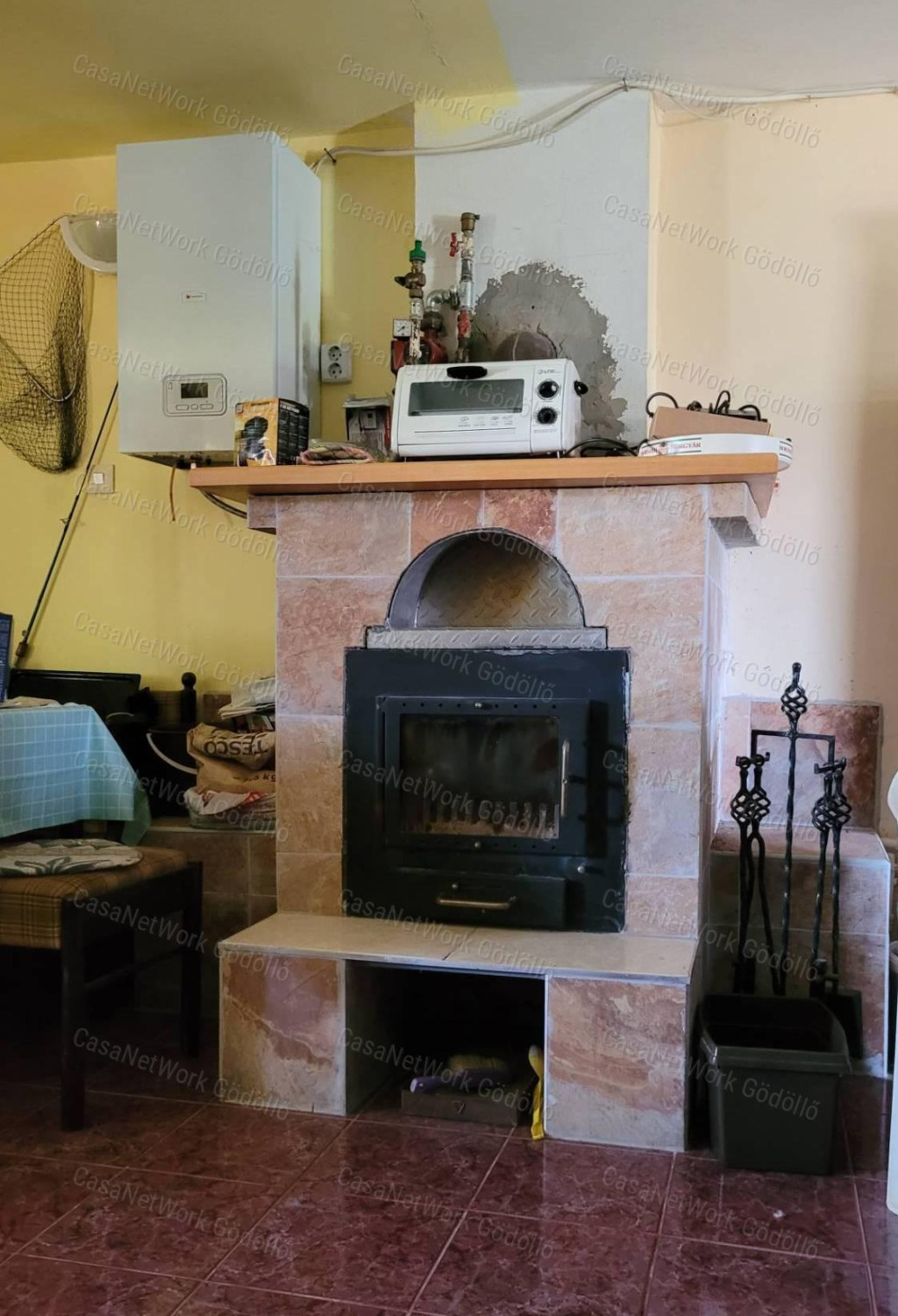víz- és villanyhálózat újA földszinten amerikai konyhás nappali, fürdőszoba, tároló, lépcsőház, fatüzeléses