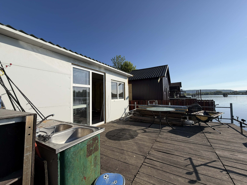 Az egész steg 63 m2, a felépítmény rajta 30 m2. A ház lapostetős, 6 cm-es szendvicspanel szerkezetű Az épület oldala és teteje 5 cm-es szigetelést kapott. Új villanyhálózat lett kiépítve, és új nyílászárók kerültek beépítésre. Vezetékes víz bevezetve. Kialakításra került benne hálószoba, fürdőszoba, egy L alakú konyha ami a nappalihoz csatlakozik, innen egy nagy üveges toló erkélyajtó nyílik a stégre, így a nappaliból és a stégről is élvezhető a tó megnyugtató közege. A ház előtt egy pihenésre alkalmas kiülős rész van kialakítva.