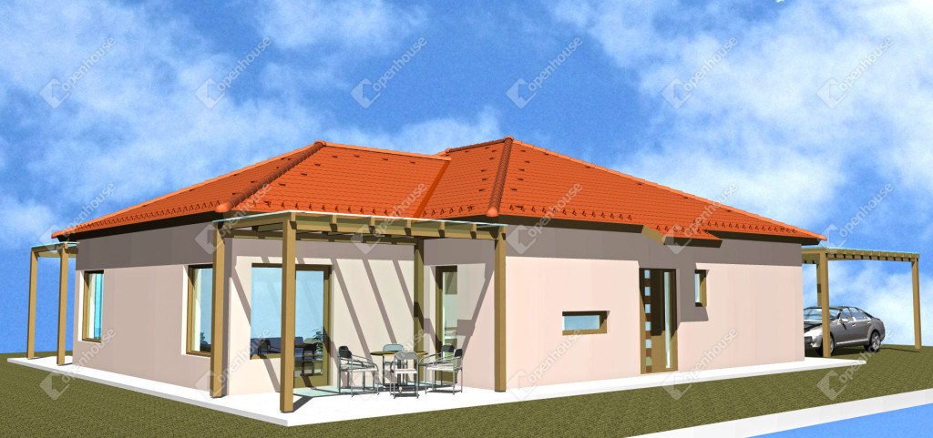 - nagy terasszal, pergolás kocsibeállóval