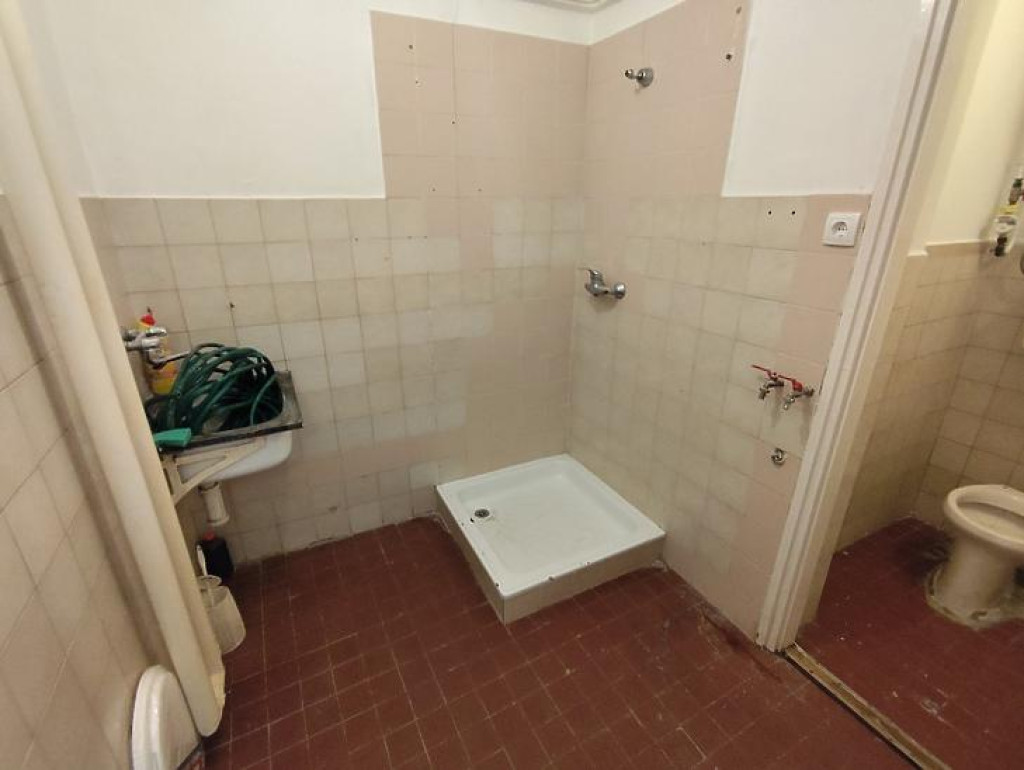 Az iroda 2 ügyféltérrel rendelkezik, hátul fürdőszoba és udvarra nyíló közlekedő került kialakításra.