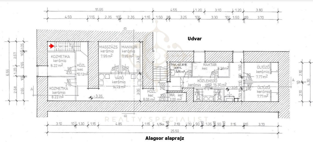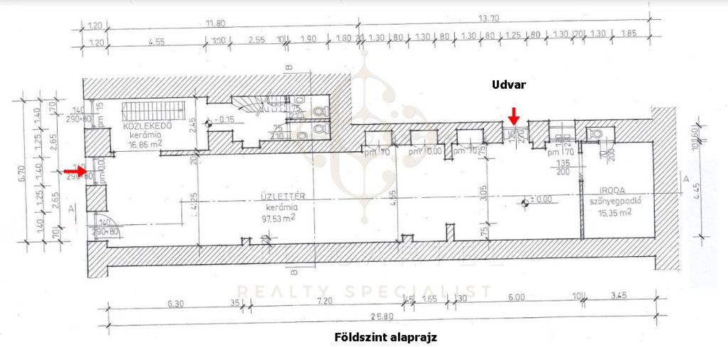 - Belmagasság: ~3 m, ideális professzionális konyha, raktárak és személyzeti helyiségek kialakítására.