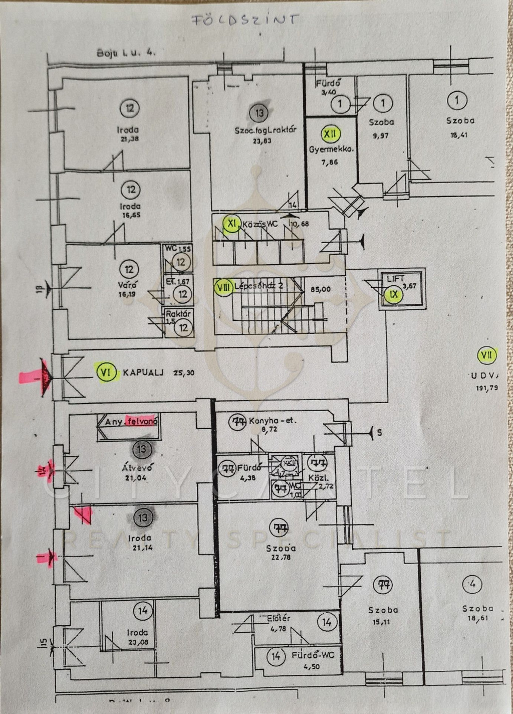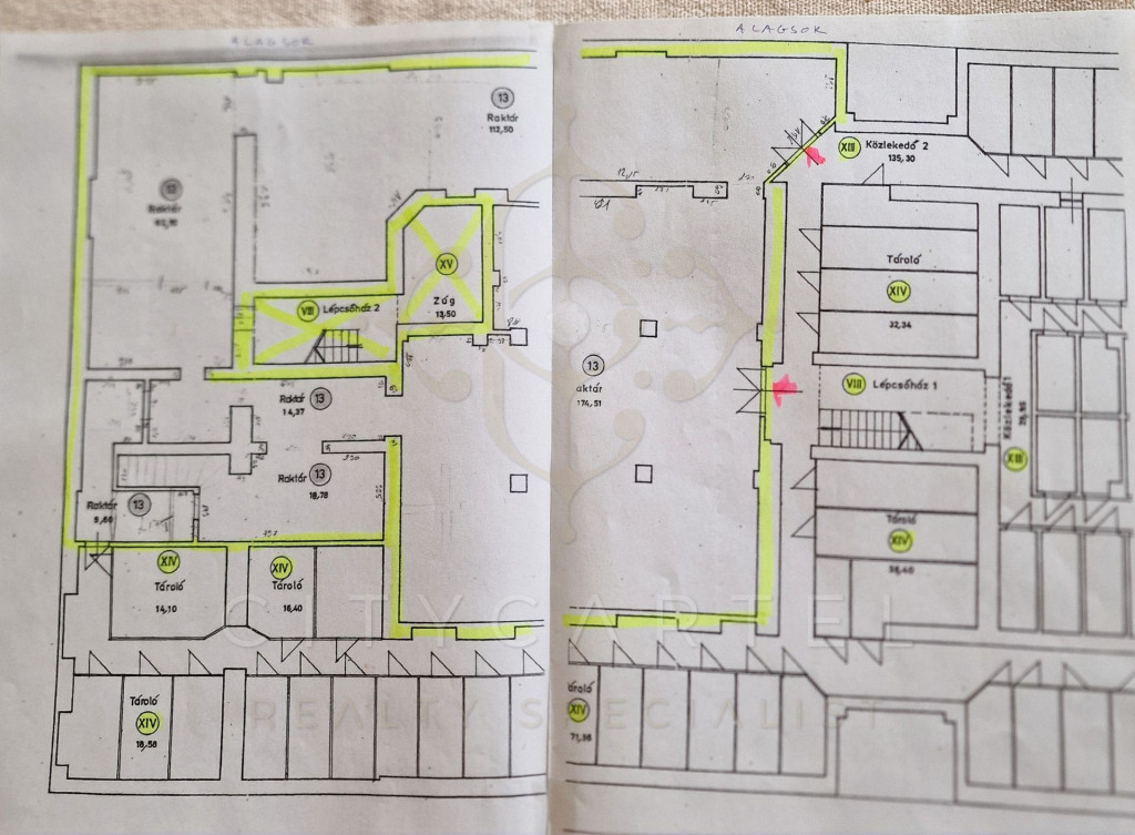 Az utcáról, teherlifttel és külön lépcsőházon át is megközelíthető, 400 négyzetméteres, 260 cm belmagasságú ALAGSORI részen iroda, mosdó, pihenésre alkalmas helyiség és raktár található.