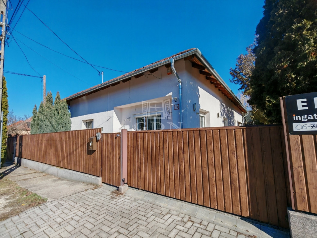 A ház egy 713 m²-es, rendezett, sík telken helyezkedik el, garázzsal és kb. 10 m²-es földes pincével.